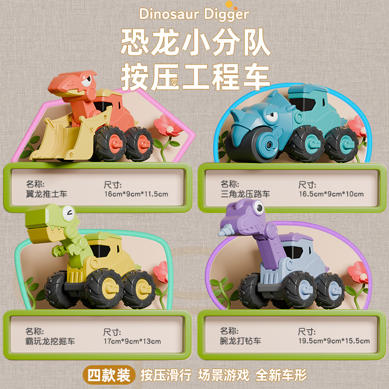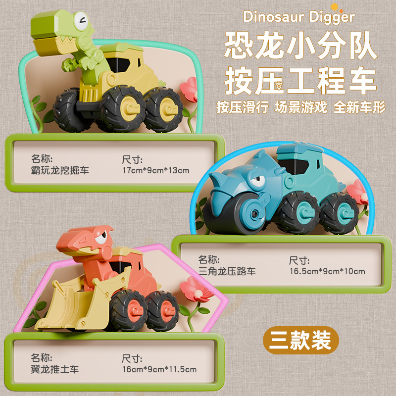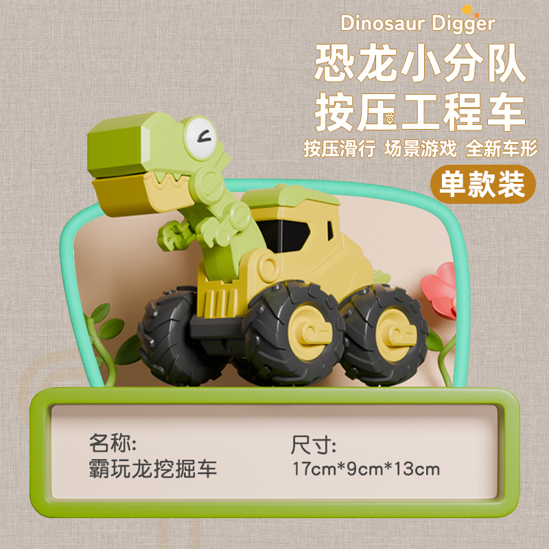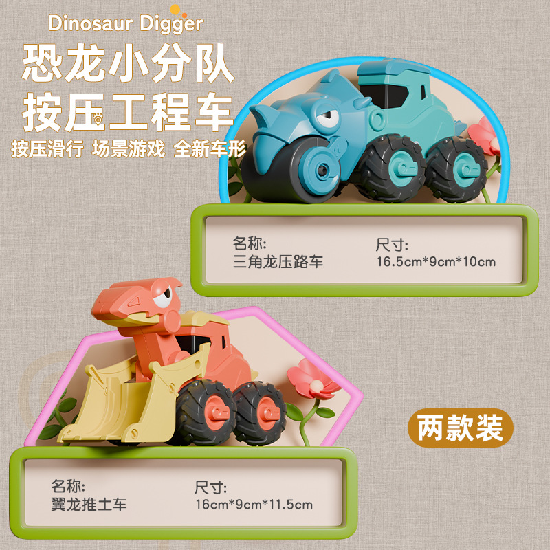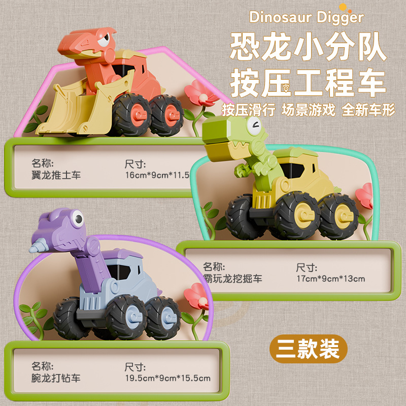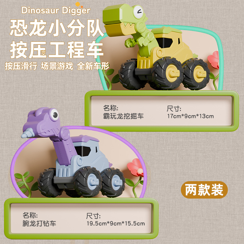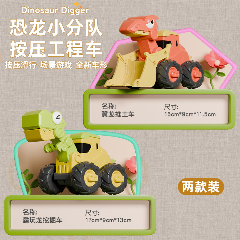 儿童按压恐龙工程车挖掘机套装热款惯性玩具车