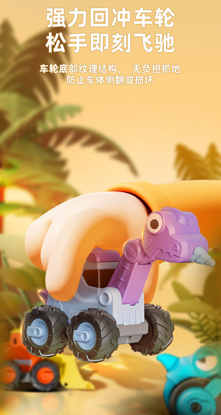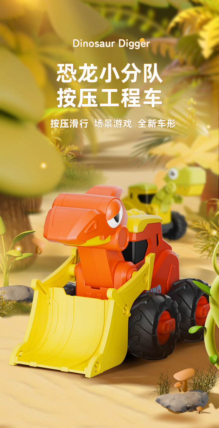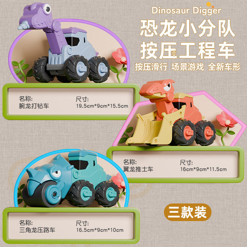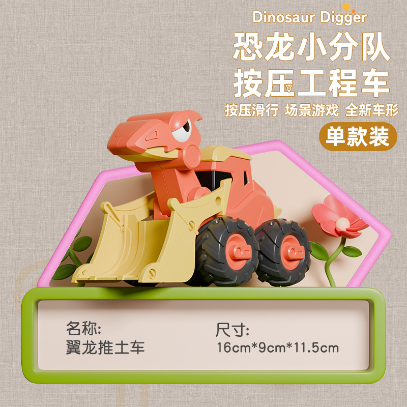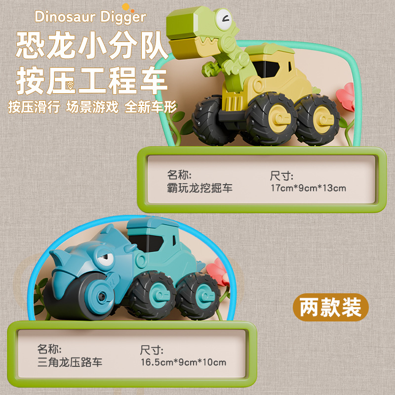 儿童按压恐龙工程车挖掘机套装热款惯性玩具车
