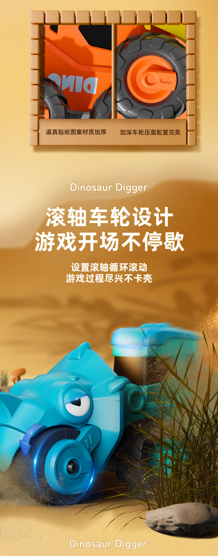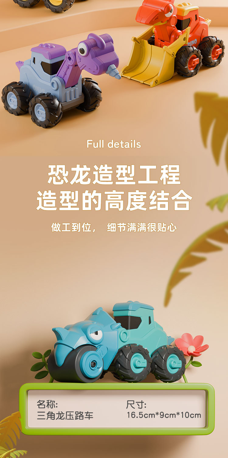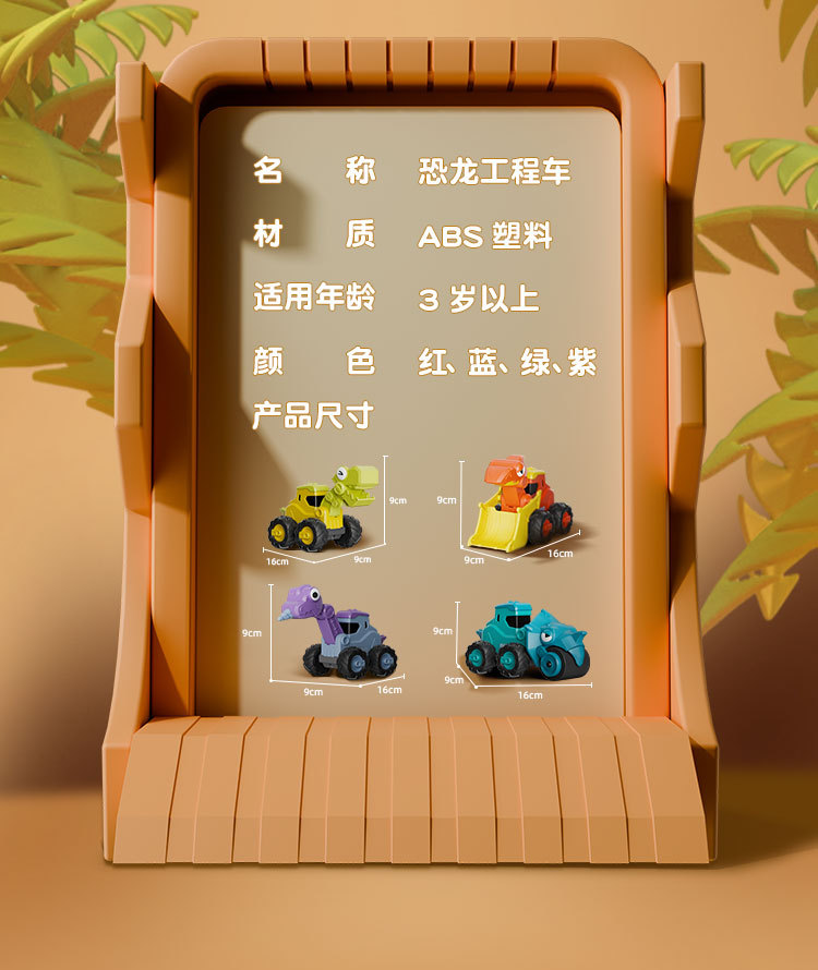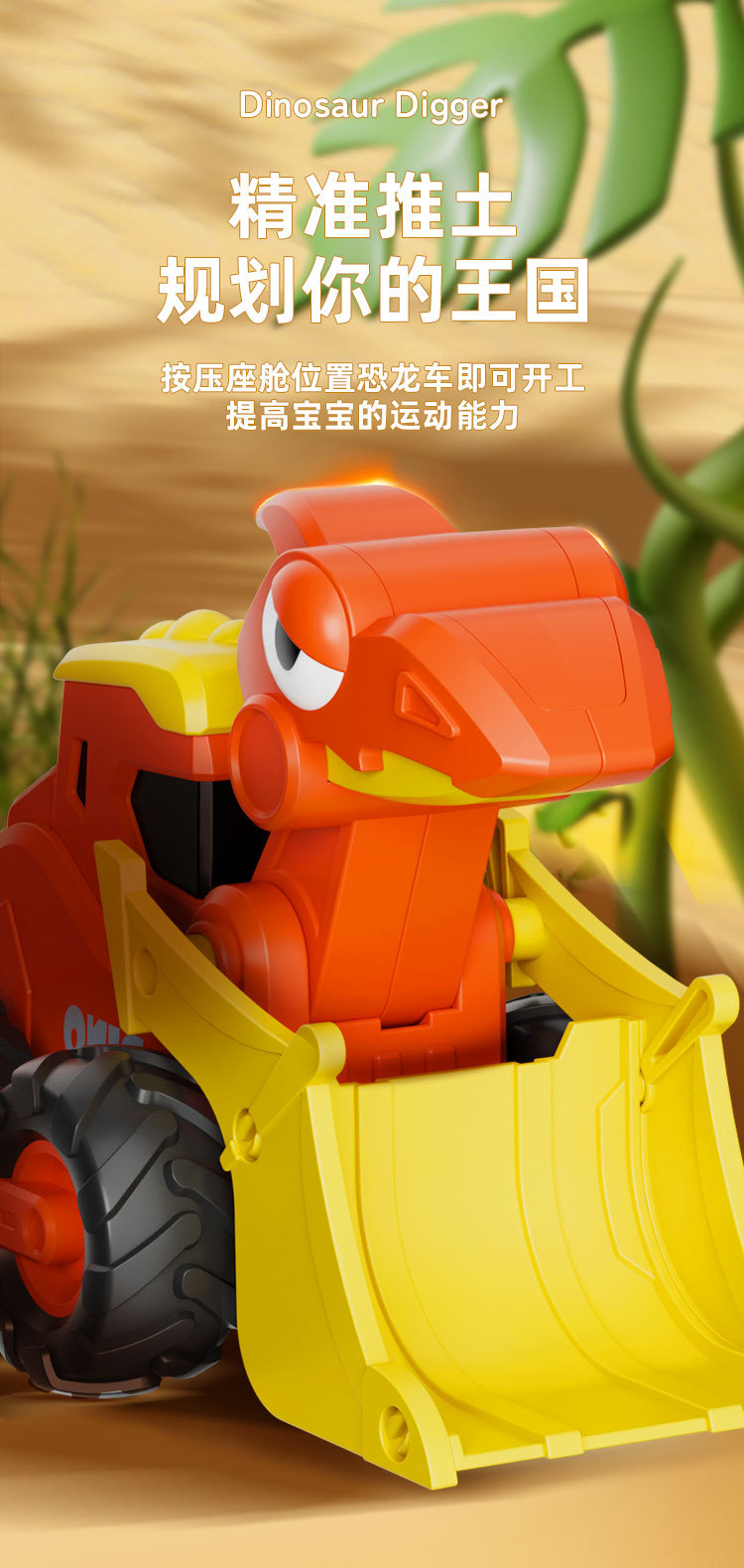 儿童按压恐龙工程车挖掘机套装热款惯性玩具车