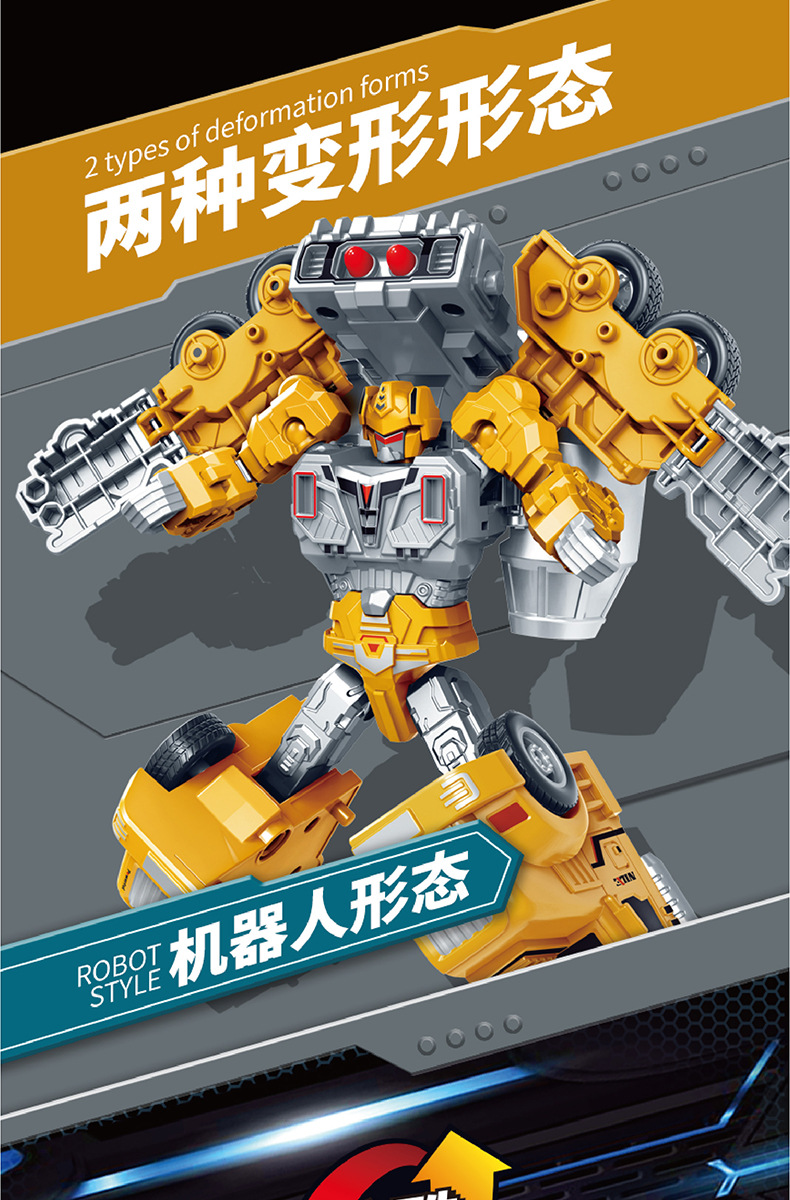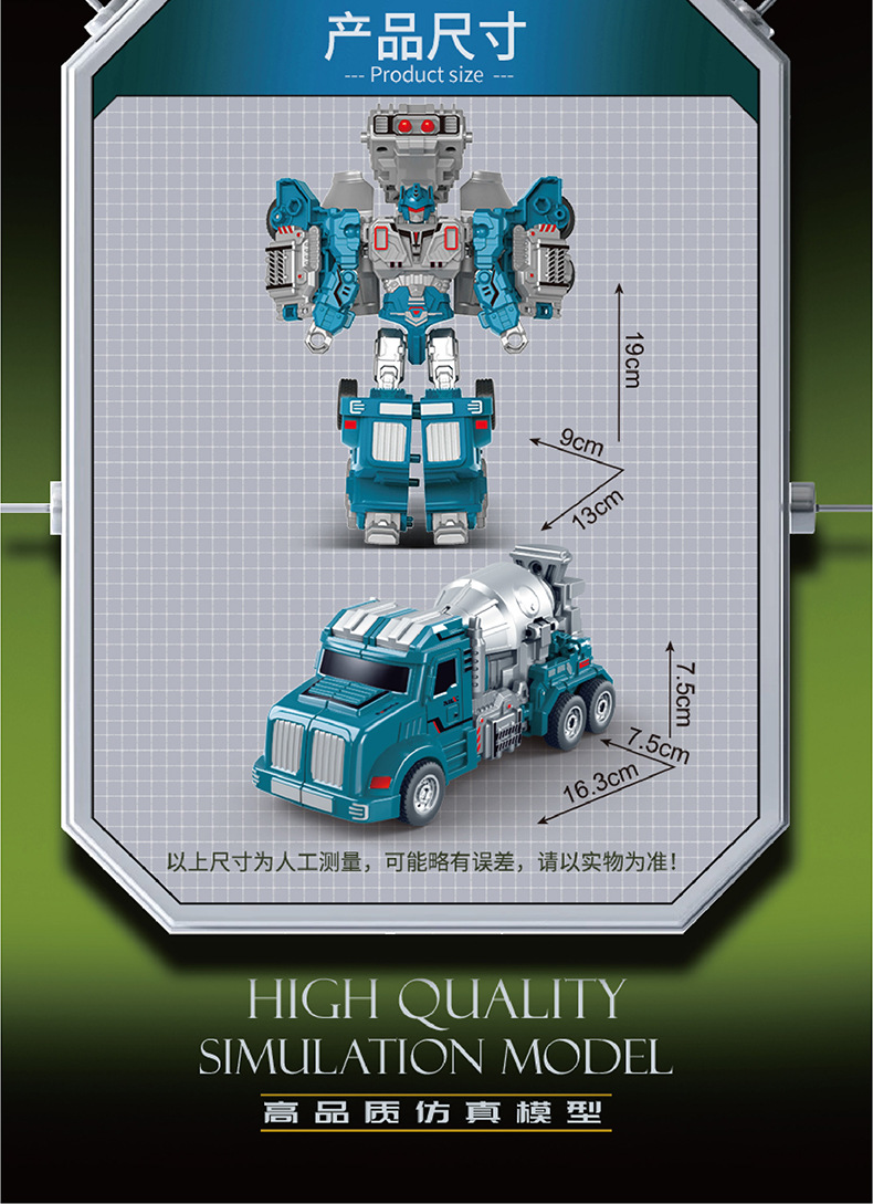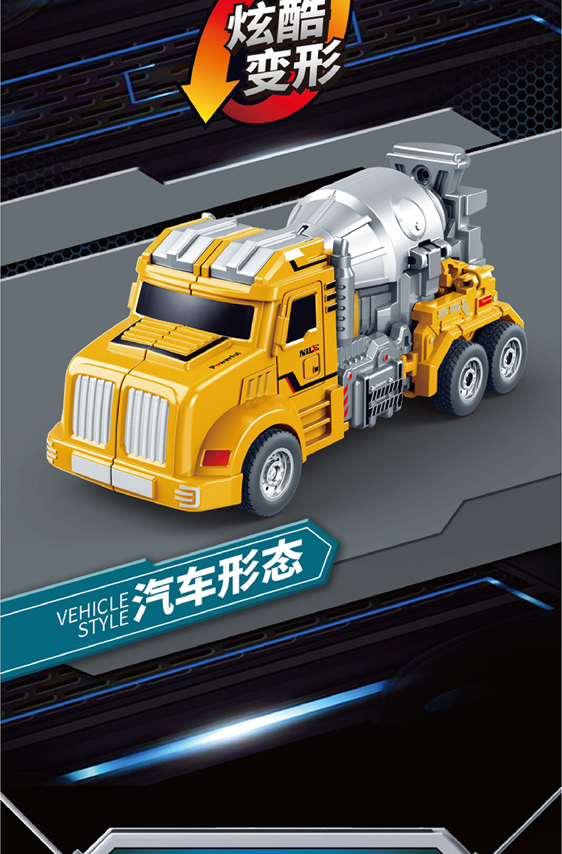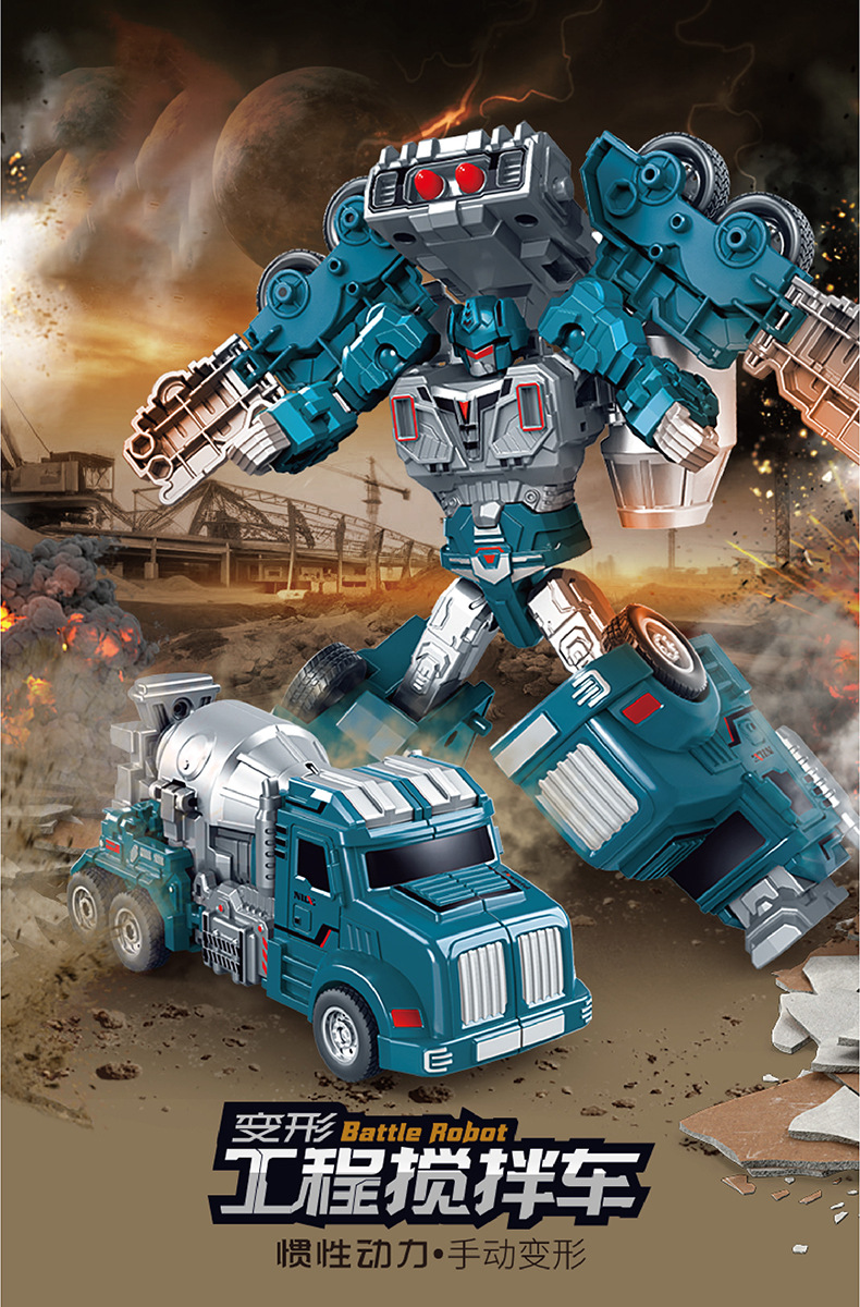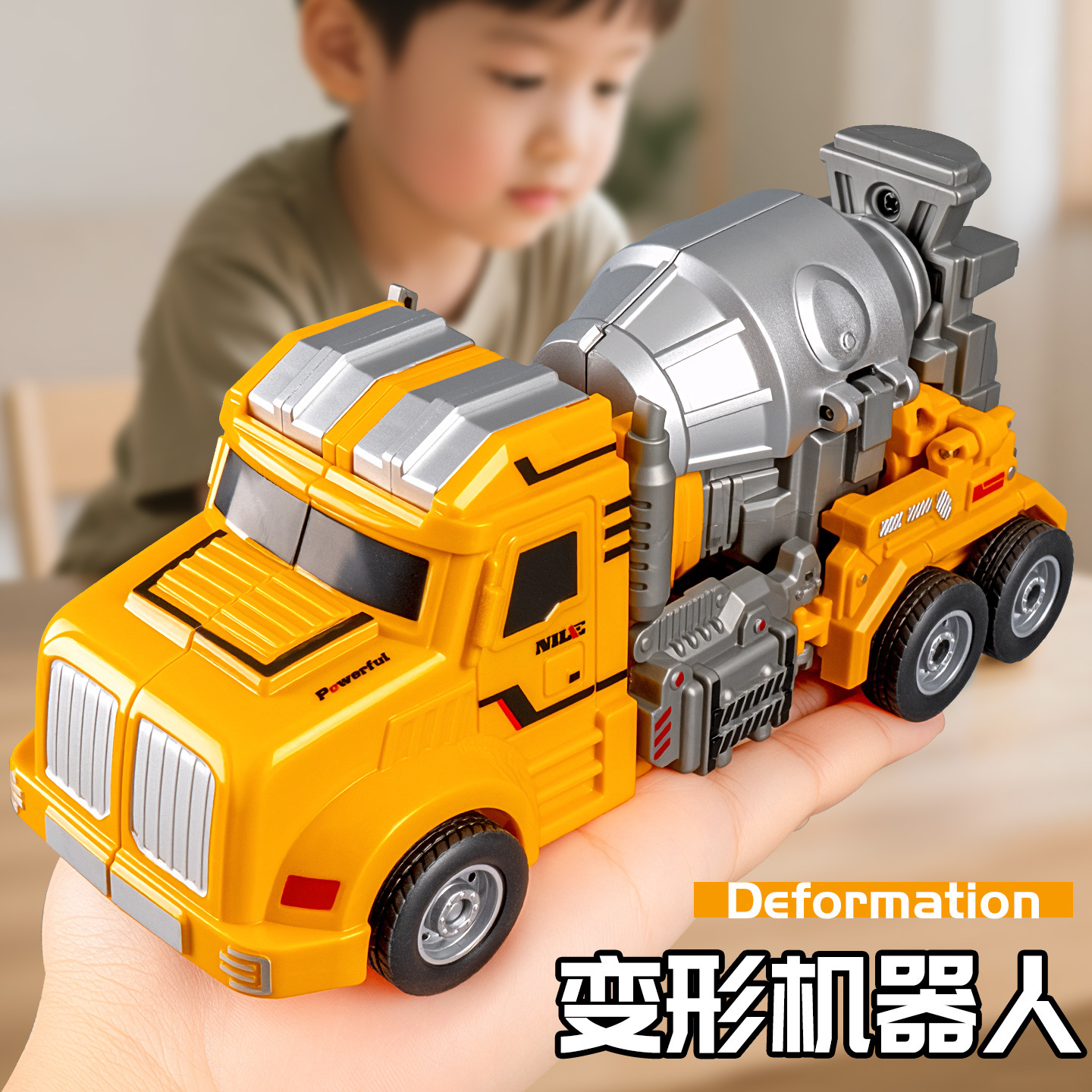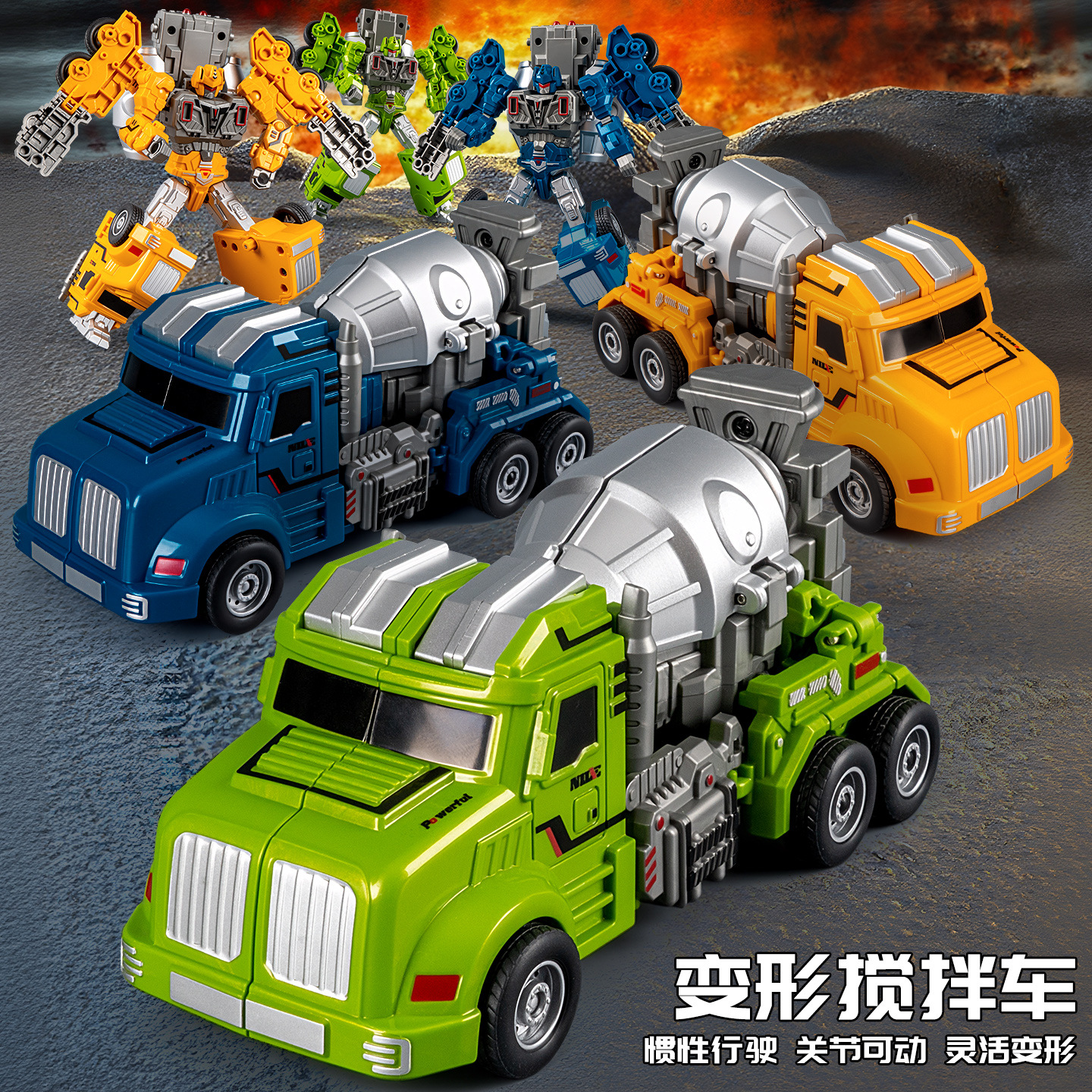炫酷搅拌车变形机器人男孩礼物仿真惯性卡车工程车模型儿童小汽车