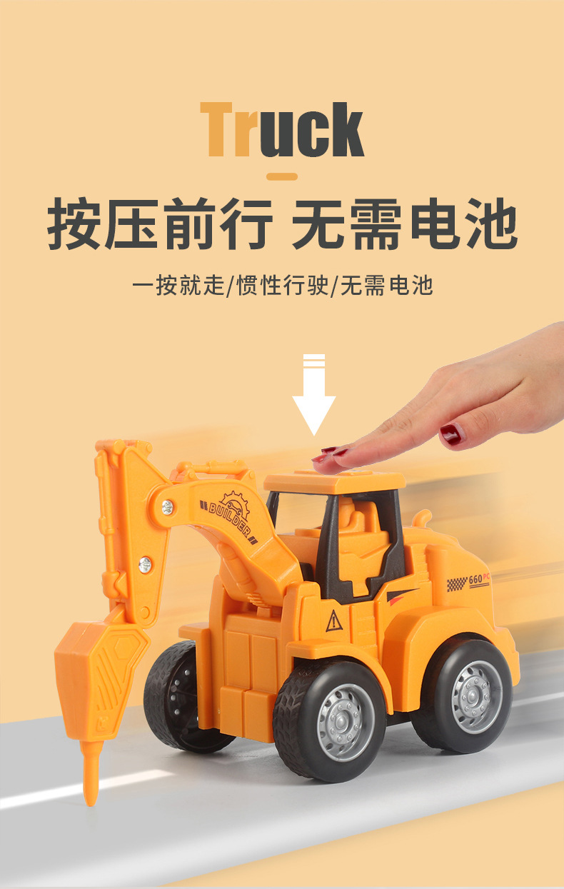 热销款儿童按压滑行工程车挖掘机推土机趣味仿真玩具车