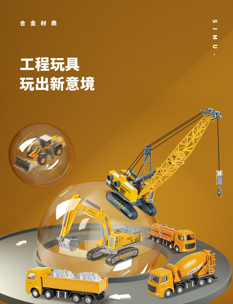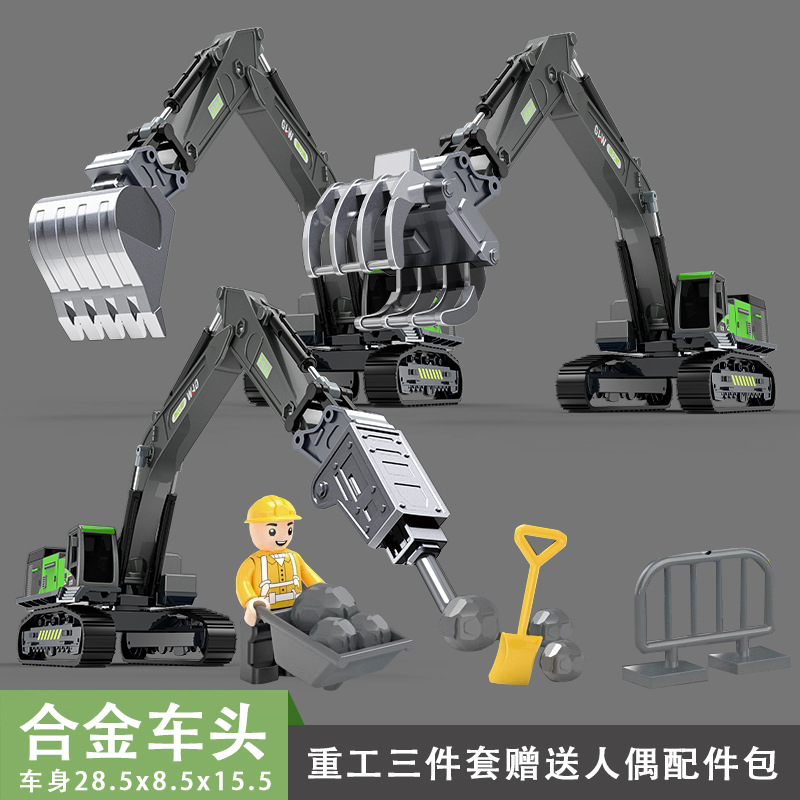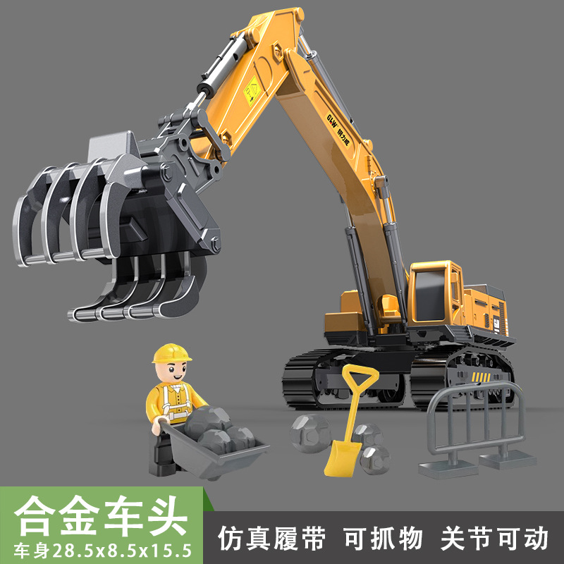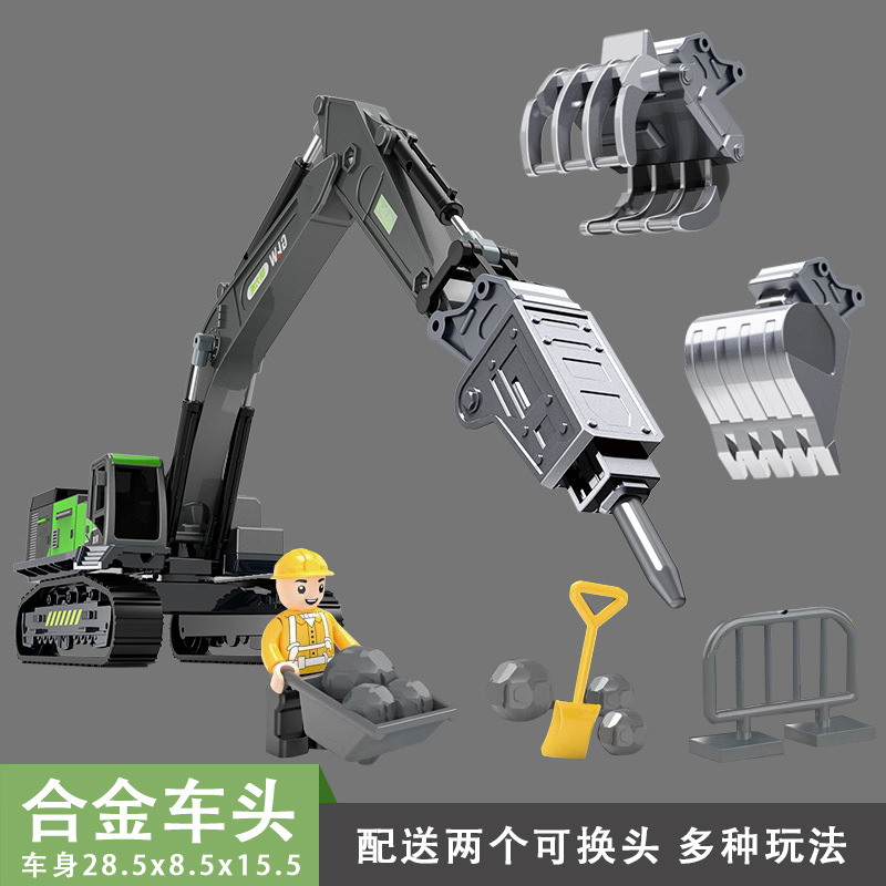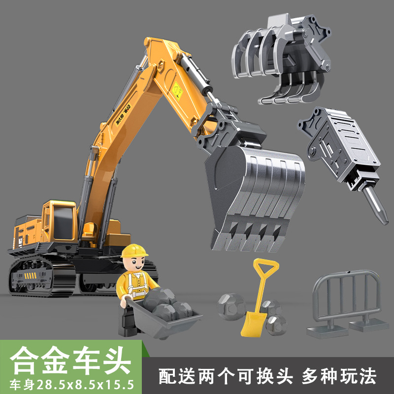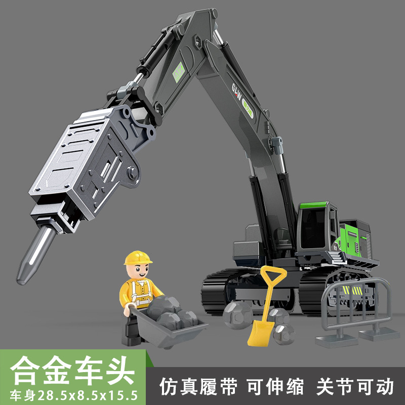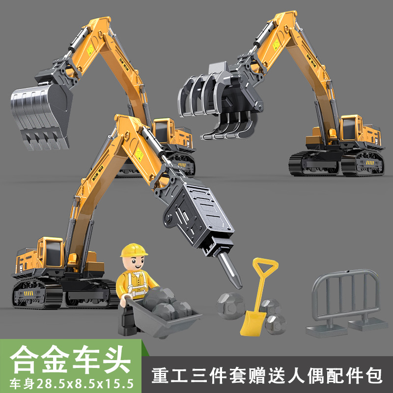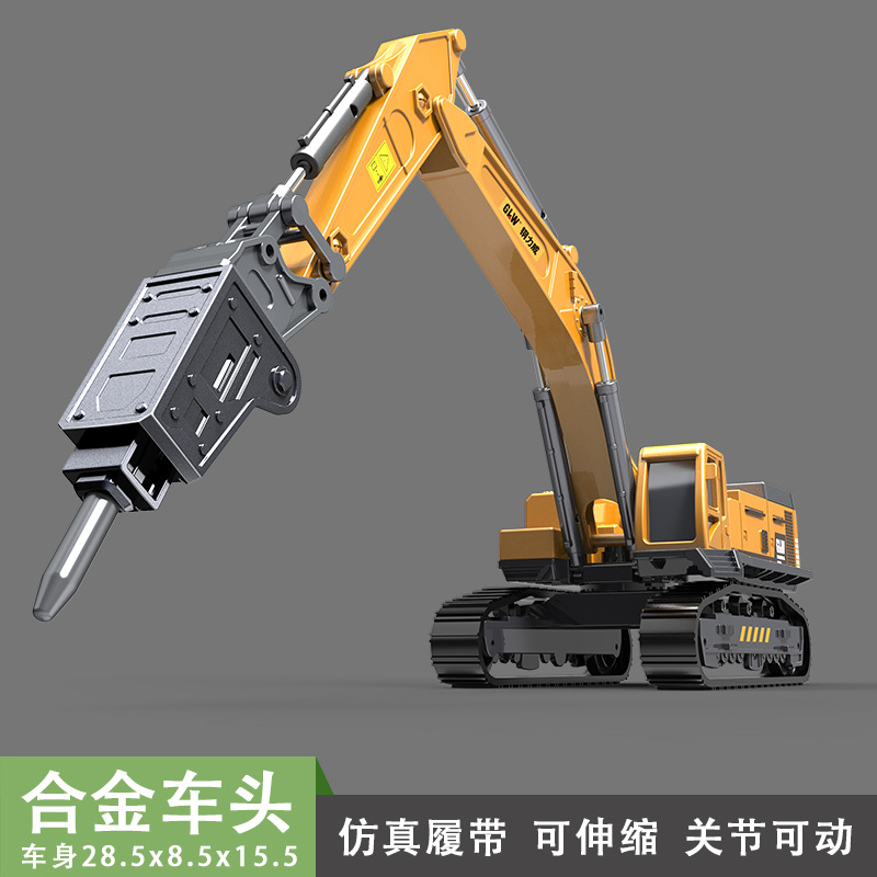 合金破碎机玩具儿童挖掘机男孩打桩凿石钻孔机玩具车抓木机工程车