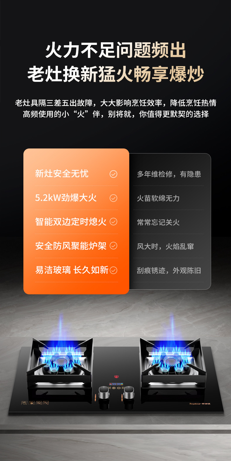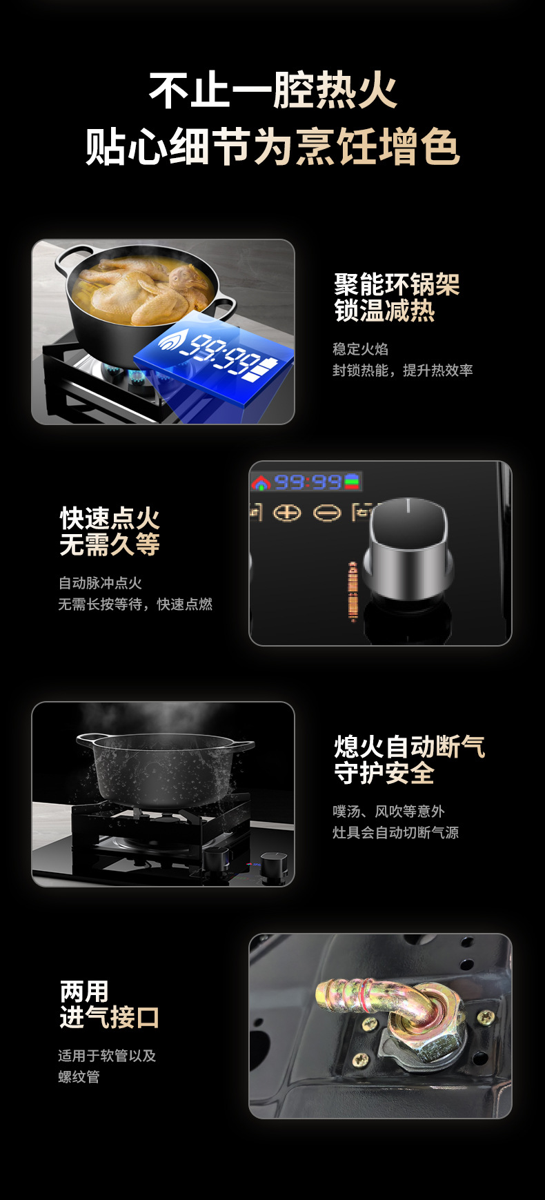 顶配升级款+钢包玻璃+双边定时+防烫+加大聚能炉架+九双腔猛火