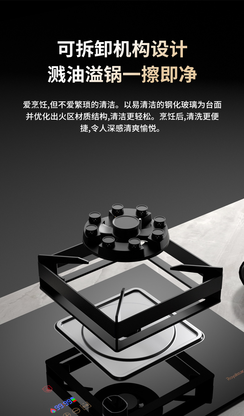 顶配款钢化玻璃+加大聚能炉架+鸳鸯猛火