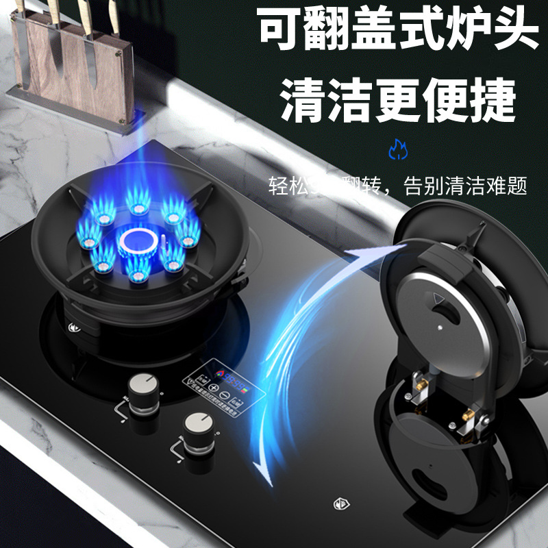 可翻盖燃气灶双灶家用天然气灶台嵌入式液化气炉煤气灶