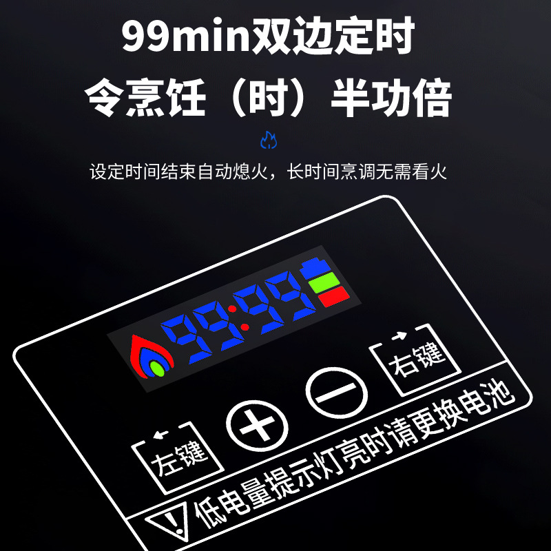 网红顶配款双腔猛火+可翻盖炉头+电量提示+双边定时