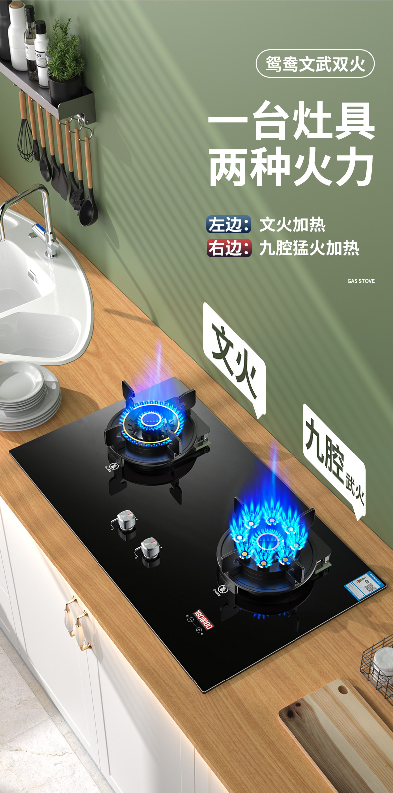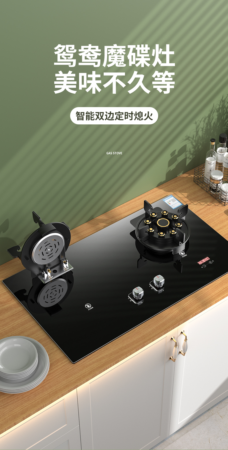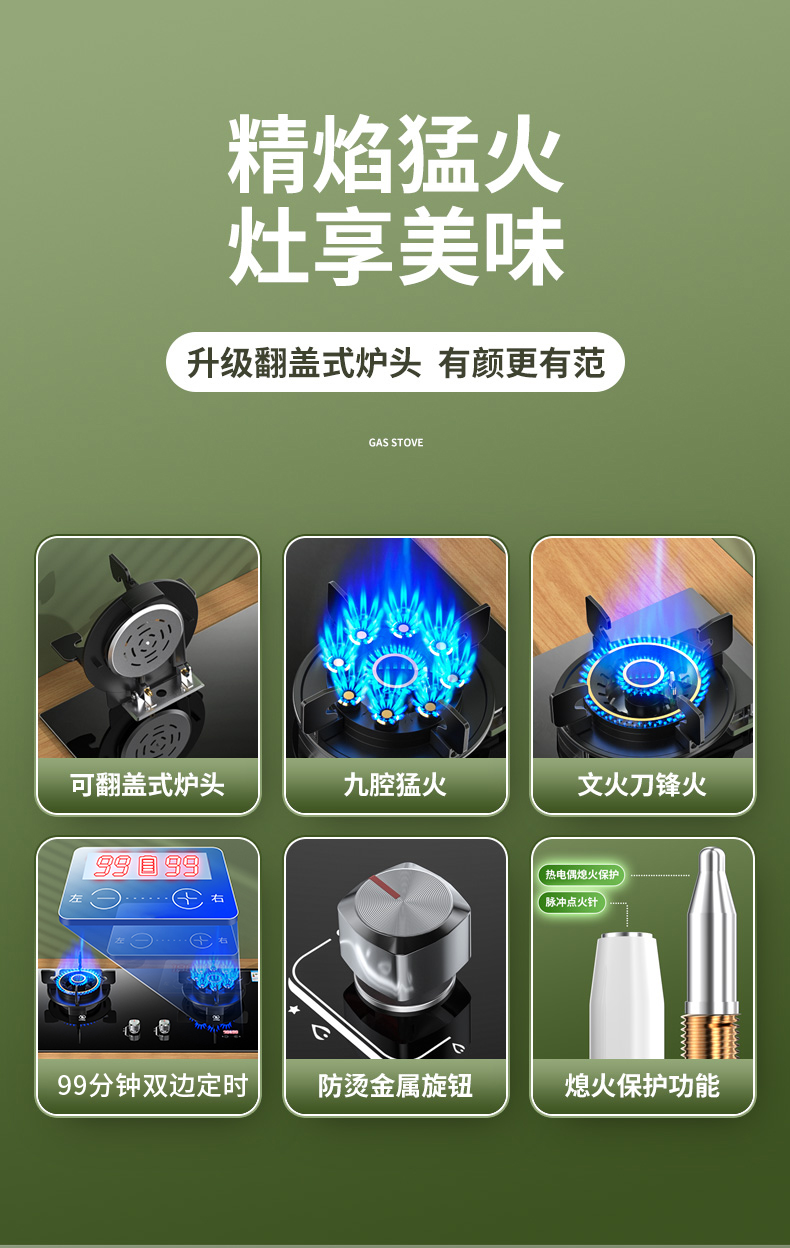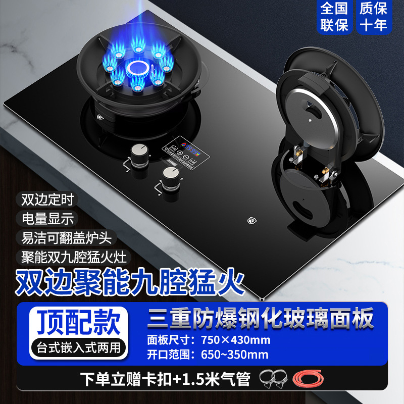 网红顶配款九腔猛火+可翻盖炉头+防烫提示+双边定时
