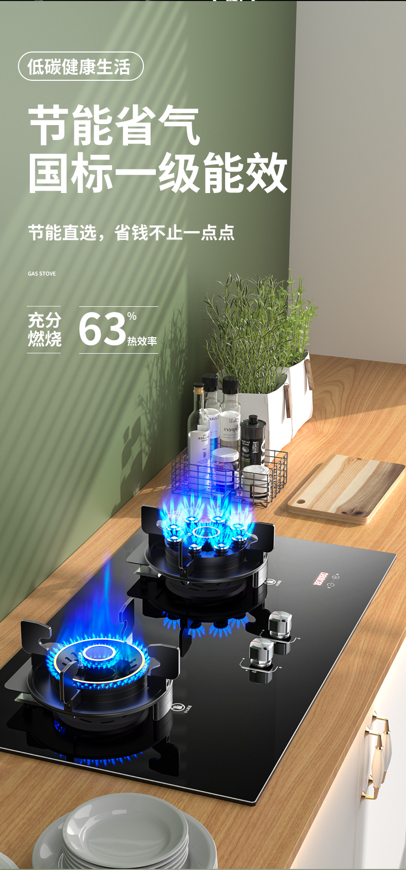 网红豪配款双腔猛火+可翻盖炉头+电量提示+防爆玻璃