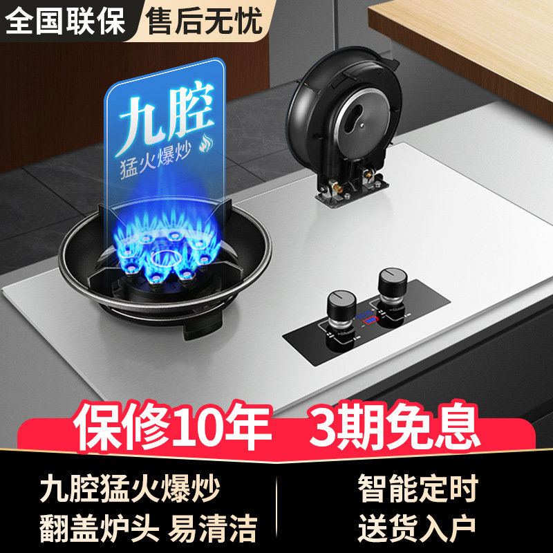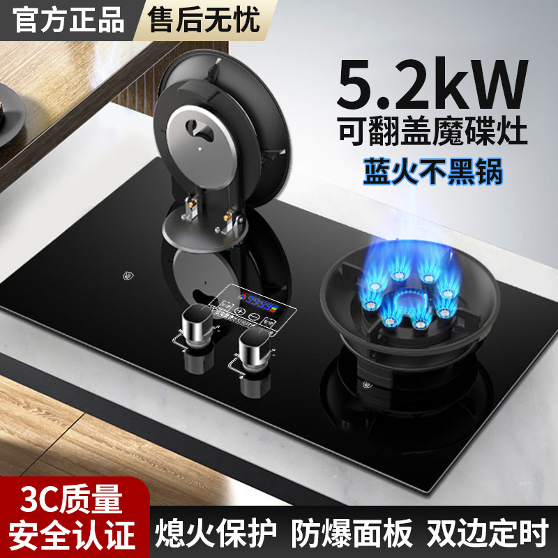 - 网红可翻盖魔碟灶九腔猛火+750大面板+双边定时