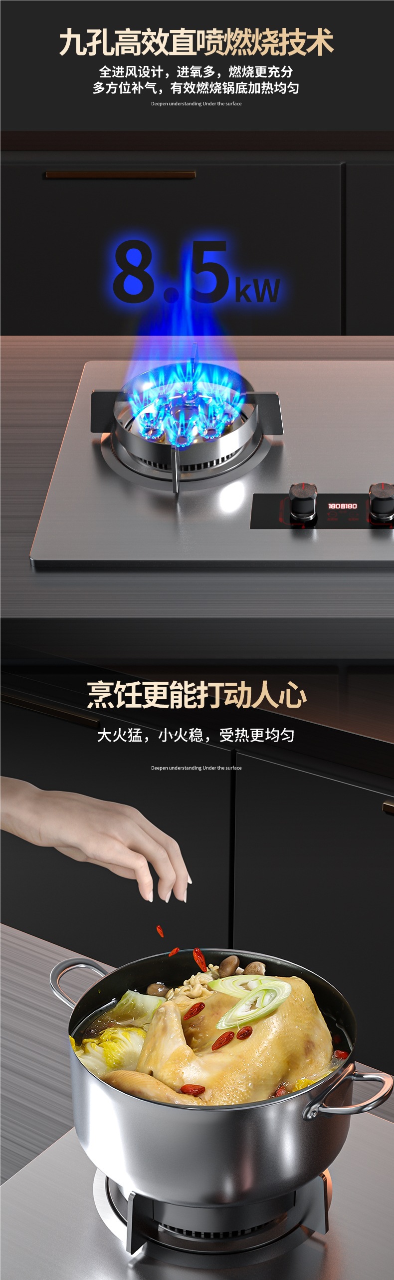 - 顶配款8.5kw双猛火不锈钢+聚能炉架+熄火保护