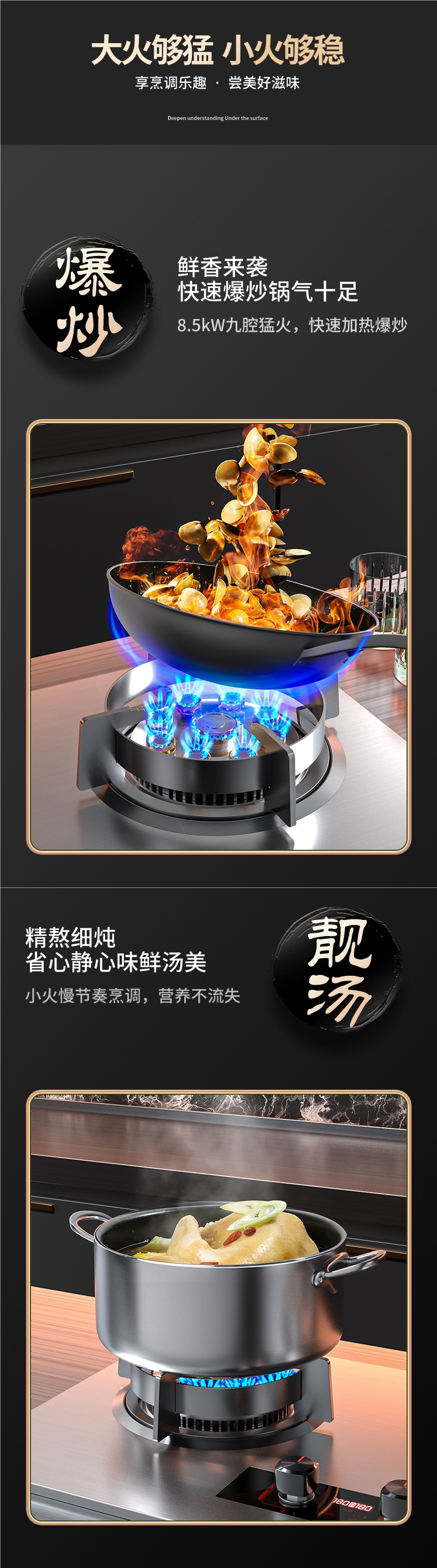 - 顶配款8.5kw双猛火定时款+聚能炉架+熄火保护