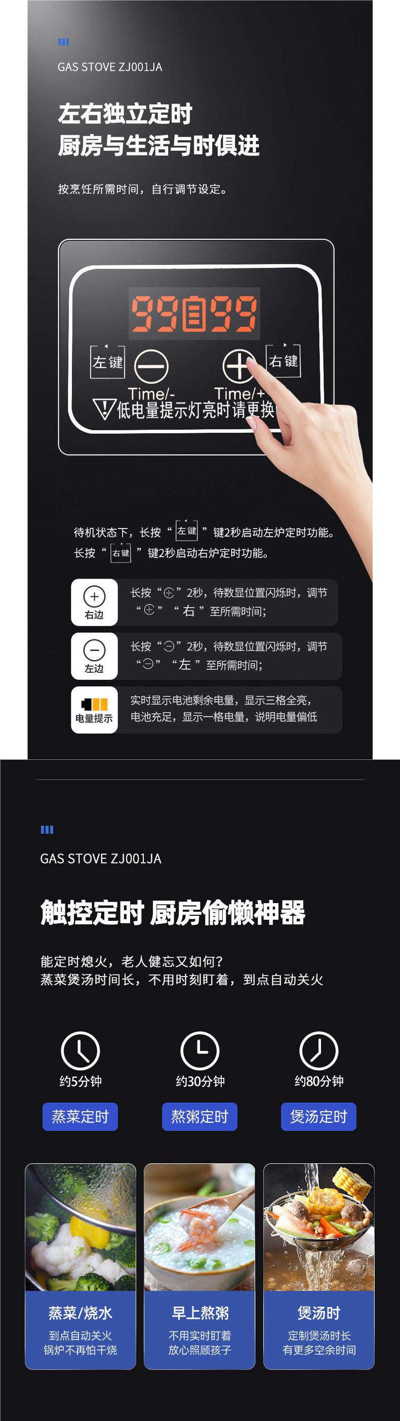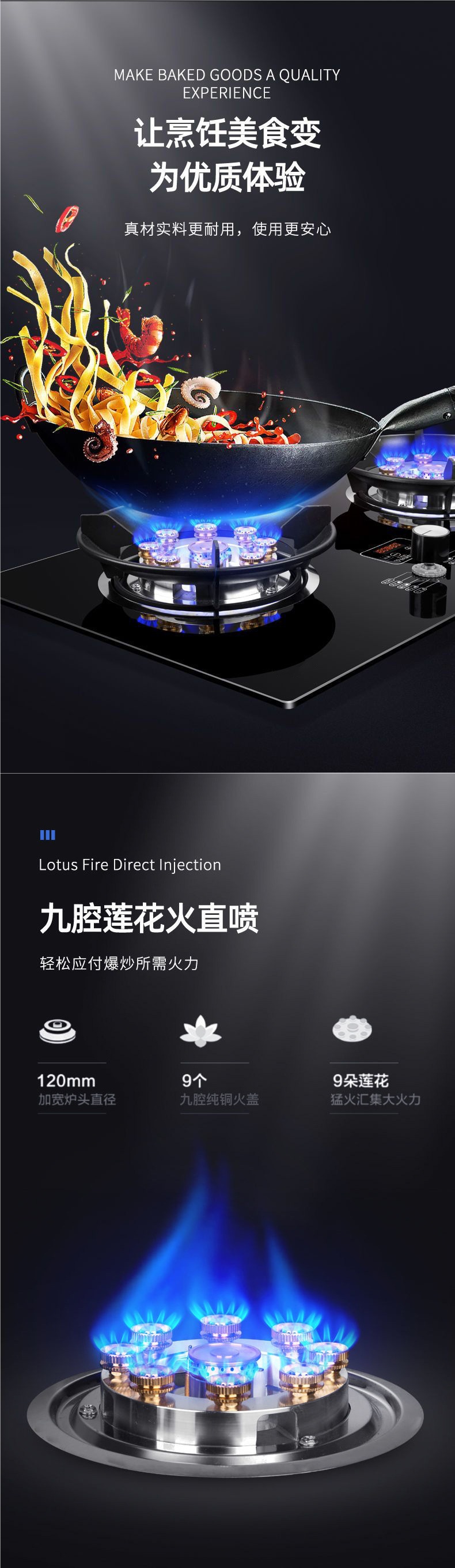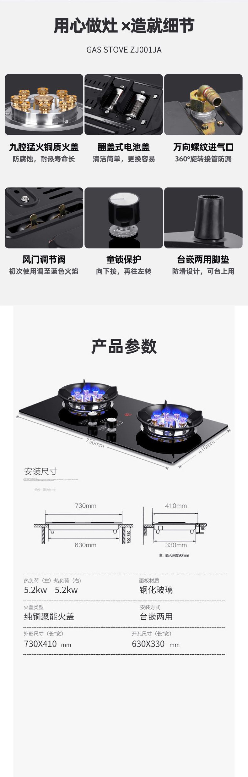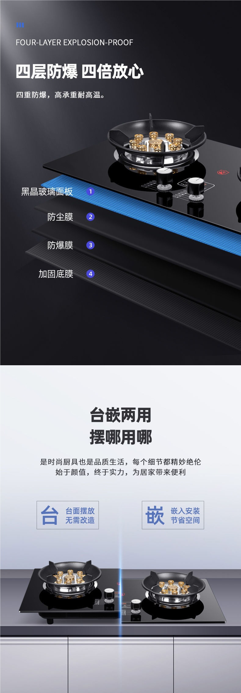 - 【旗舰款】钢化玻璃+双边九腔猛火+方型防风炉架+定时功能