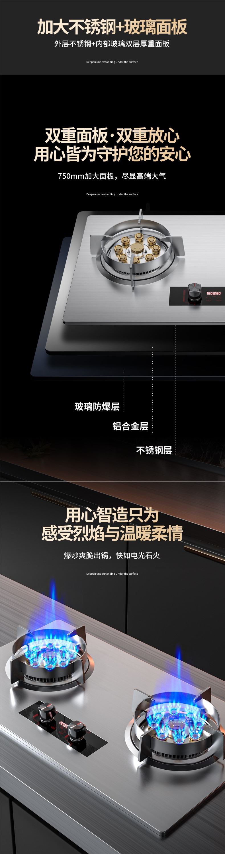 - 翻盖款9.8kw玻璃双猛火款+翻盖炉头+熄火保护