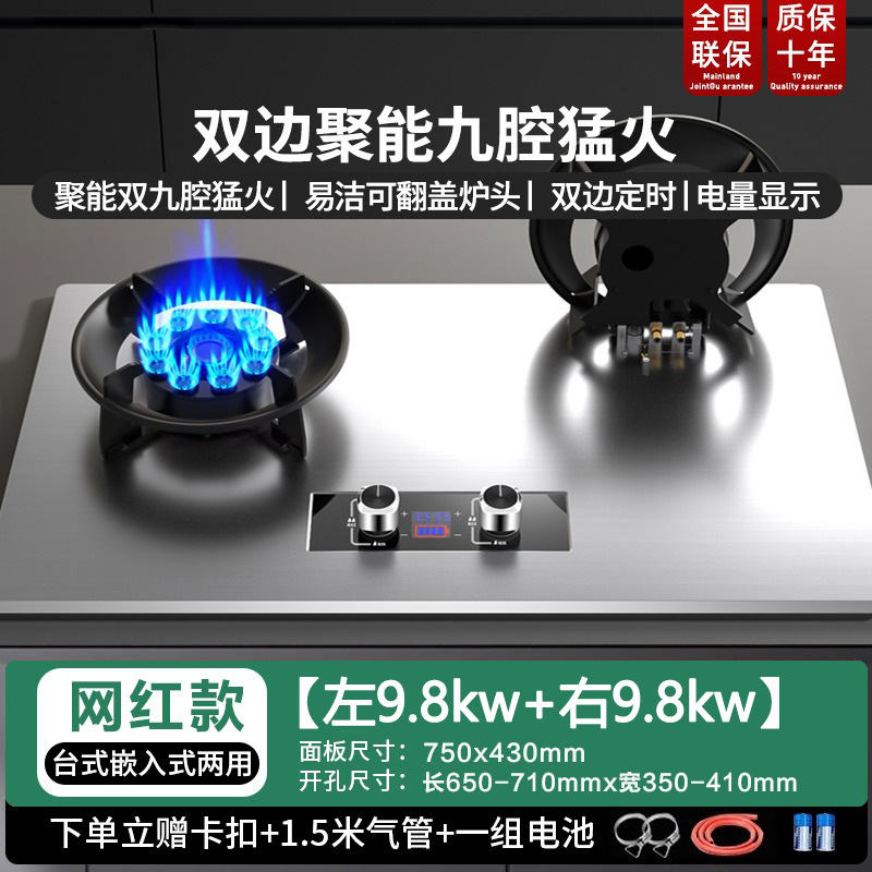 - 顶配款9.8kw双猛火定时款+聚能炉架+熄火保护
