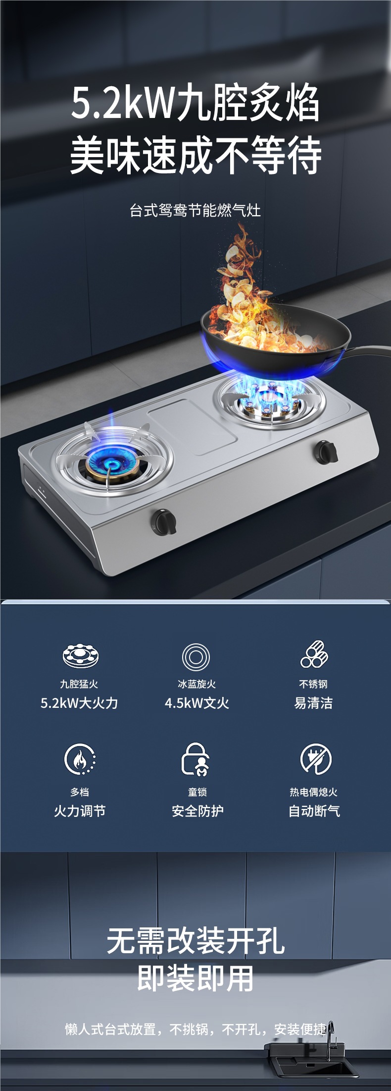 - 升级款5.2kw节能炫火-加厚不锈钢-熄火保护-天然气
