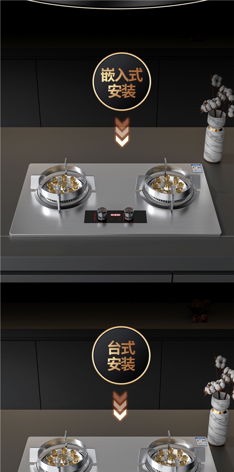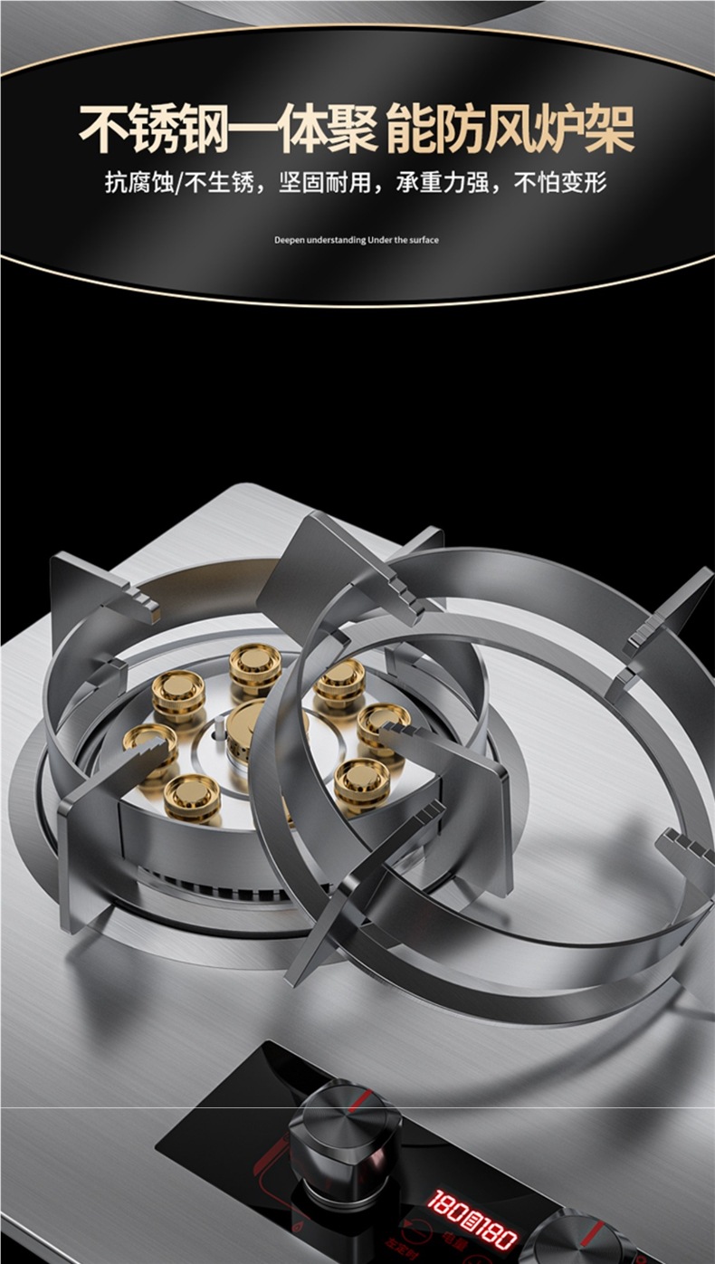 - 标配5.8kw双文火+熄火保护+一级能效-不锈钢