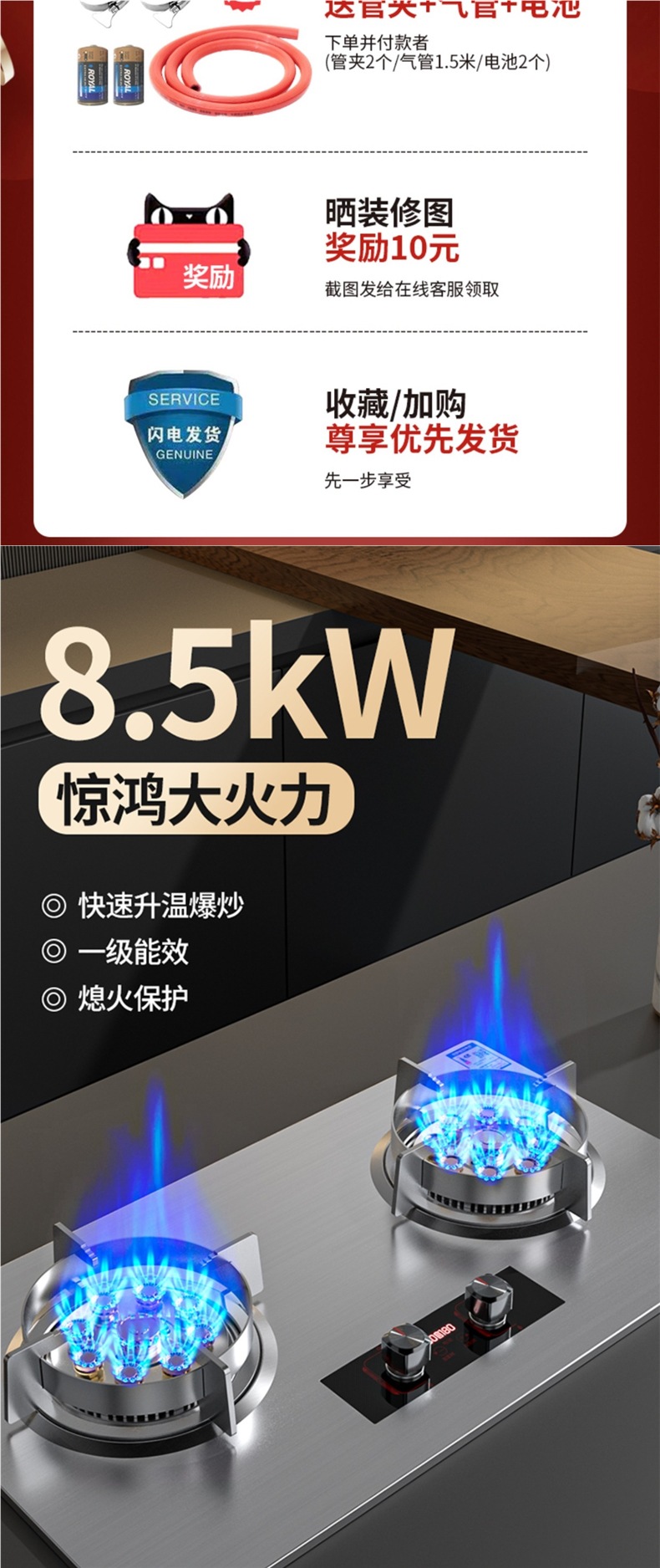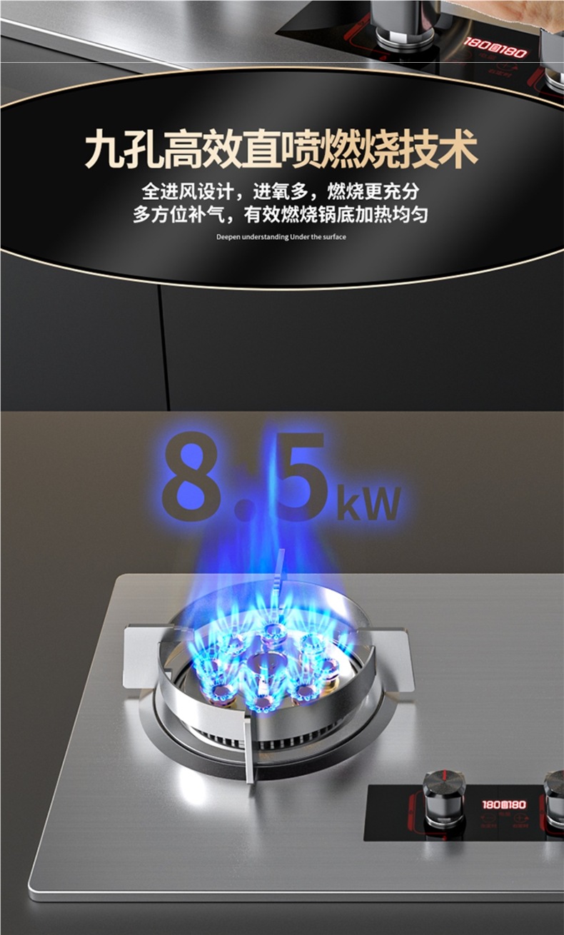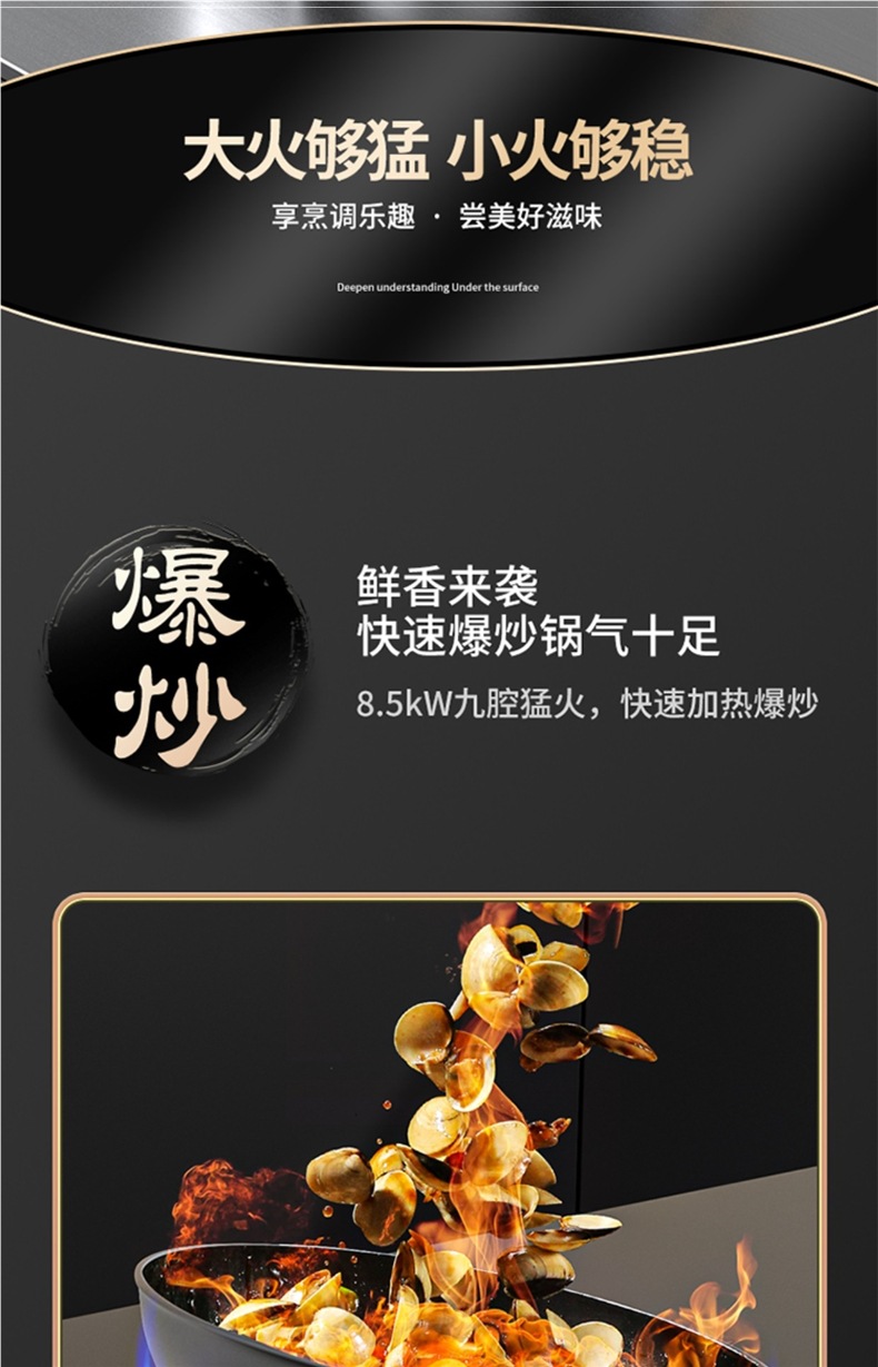 - 高配8.5kw猛火右九腔+无定时+一级能效+熄火保护