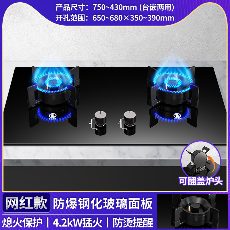燃气灶双灶家用台嵌入式天然气液化气煤气灶节能定时猛火炉