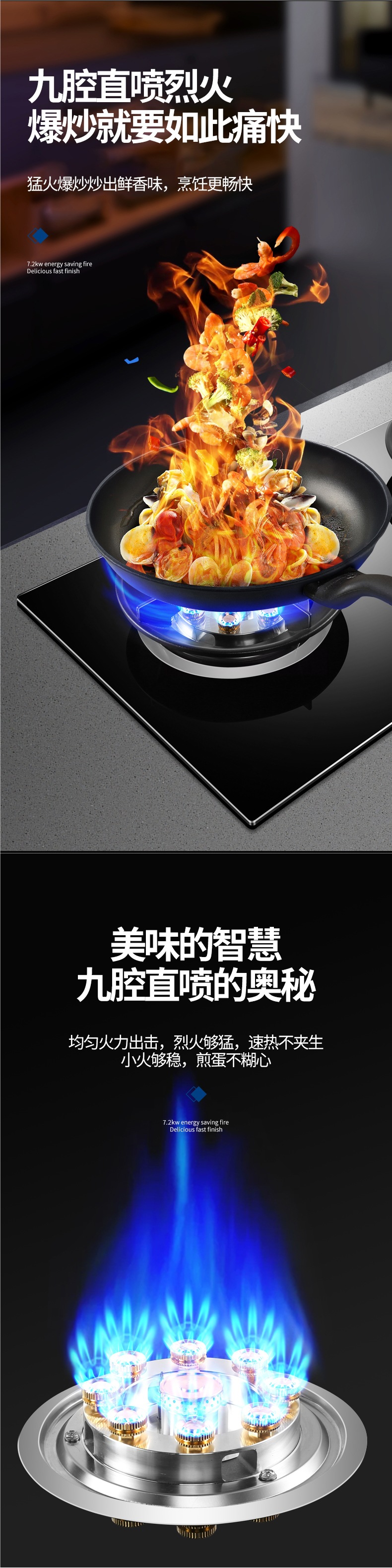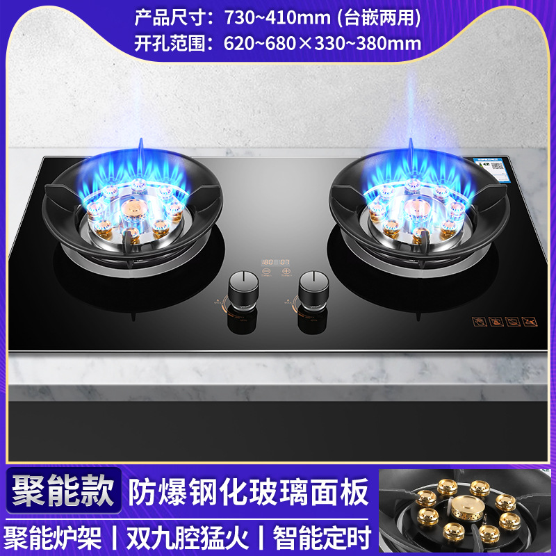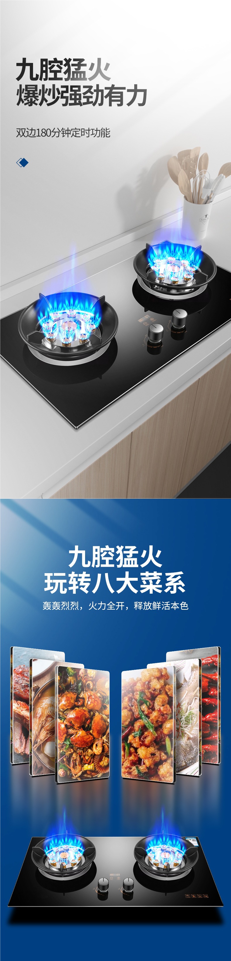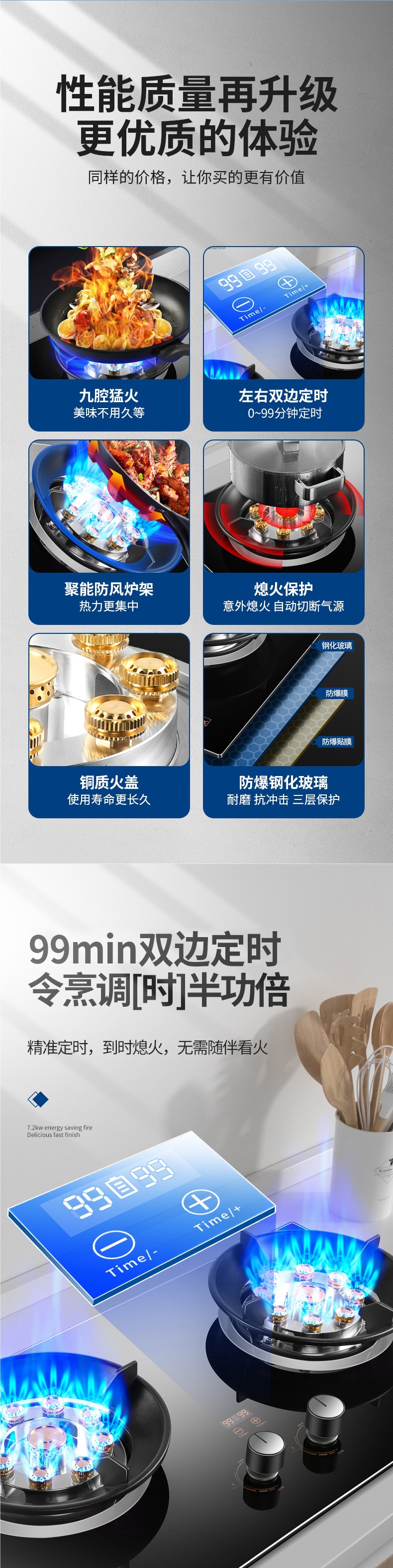 - 聚能旗舰款双九枪猛火灶+电量显示+双边定时