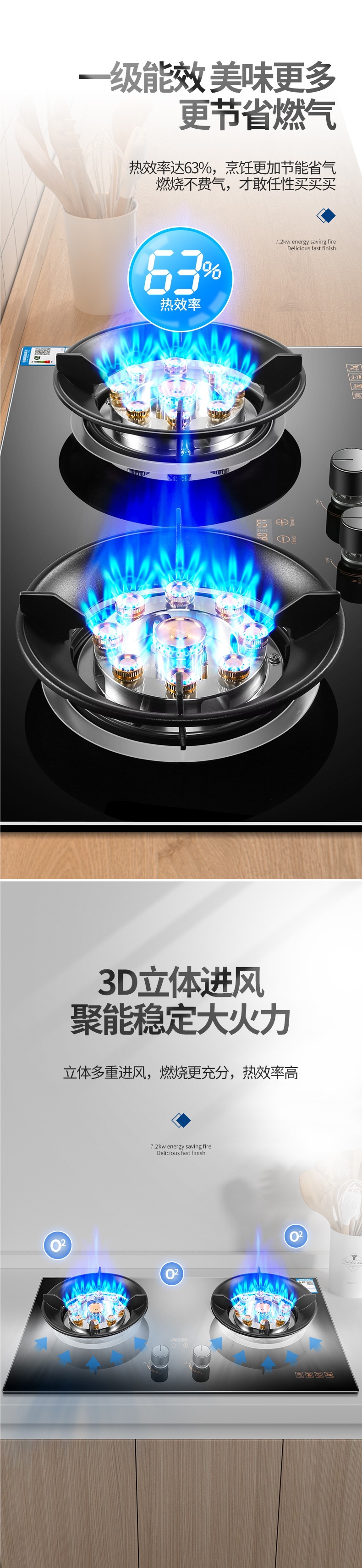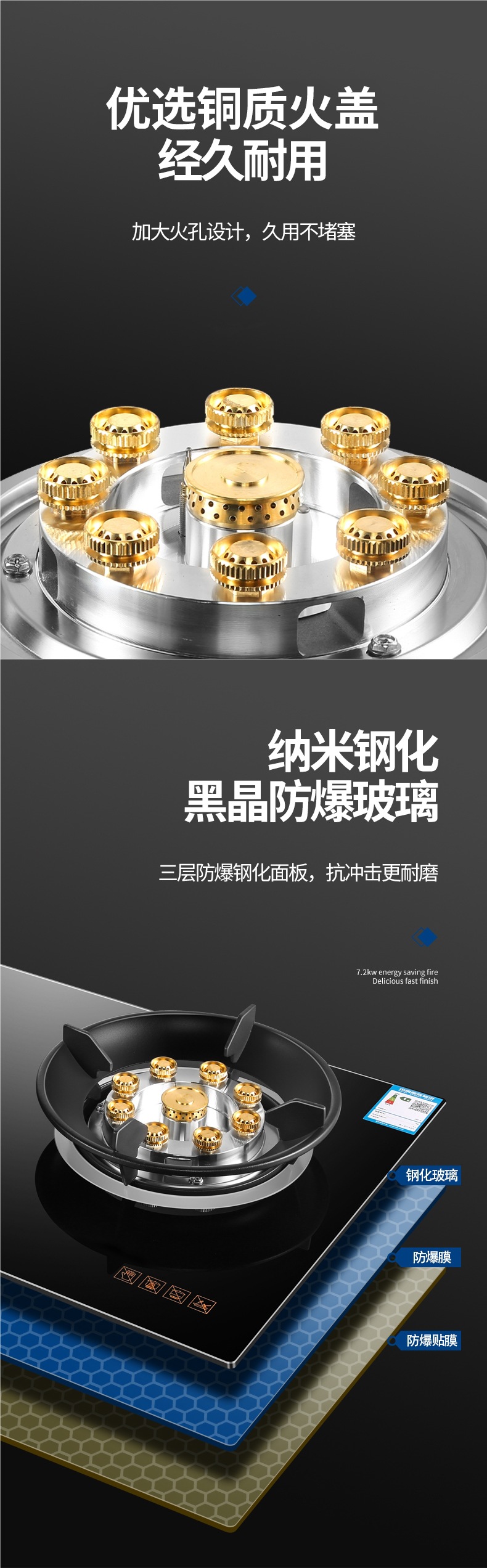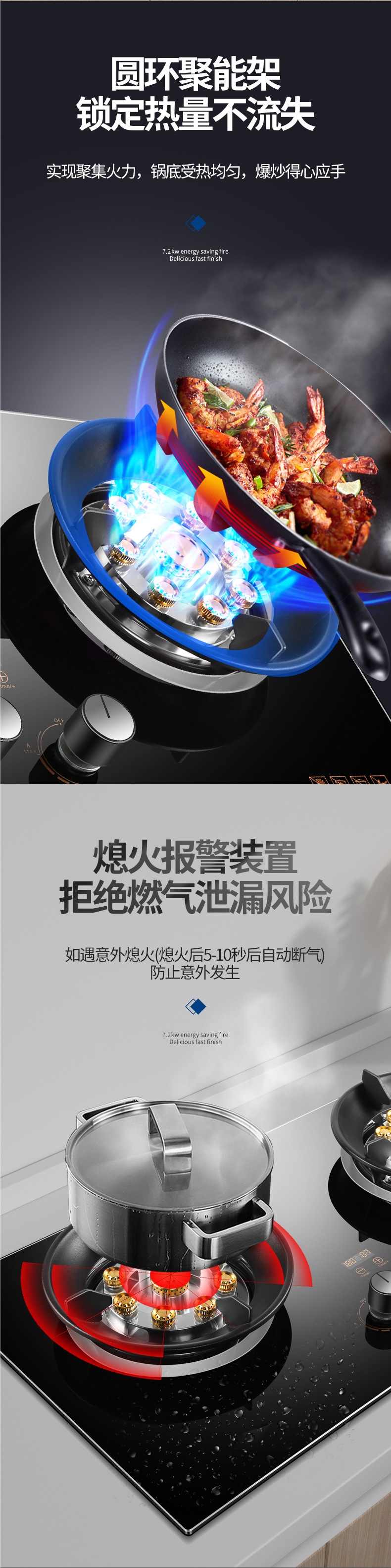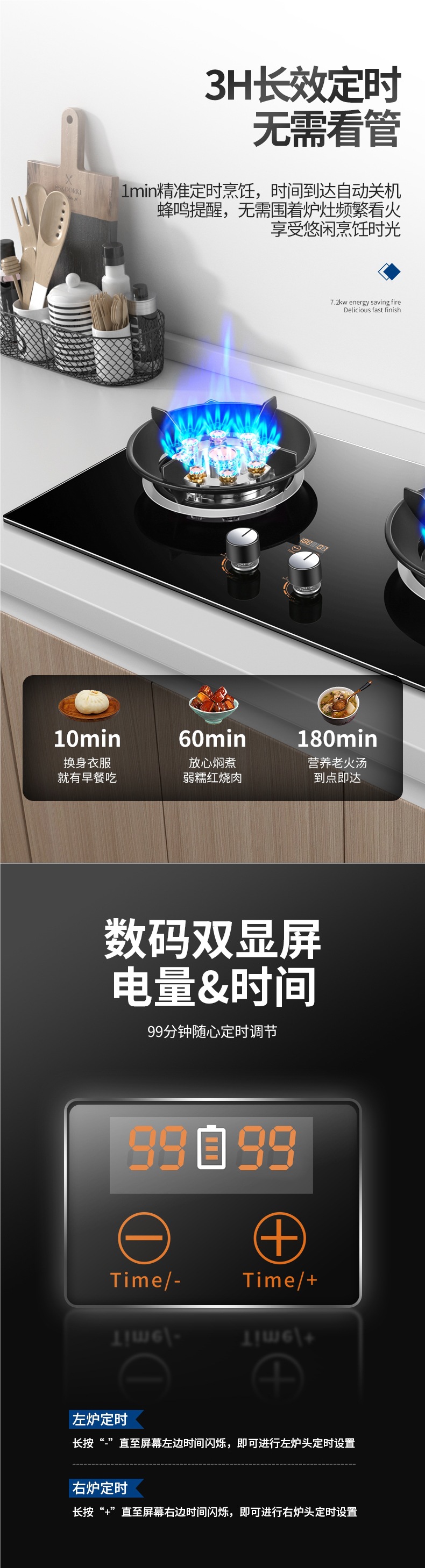 - 聚能旗舰款双九枪猛火灶+电量显示+双边定时