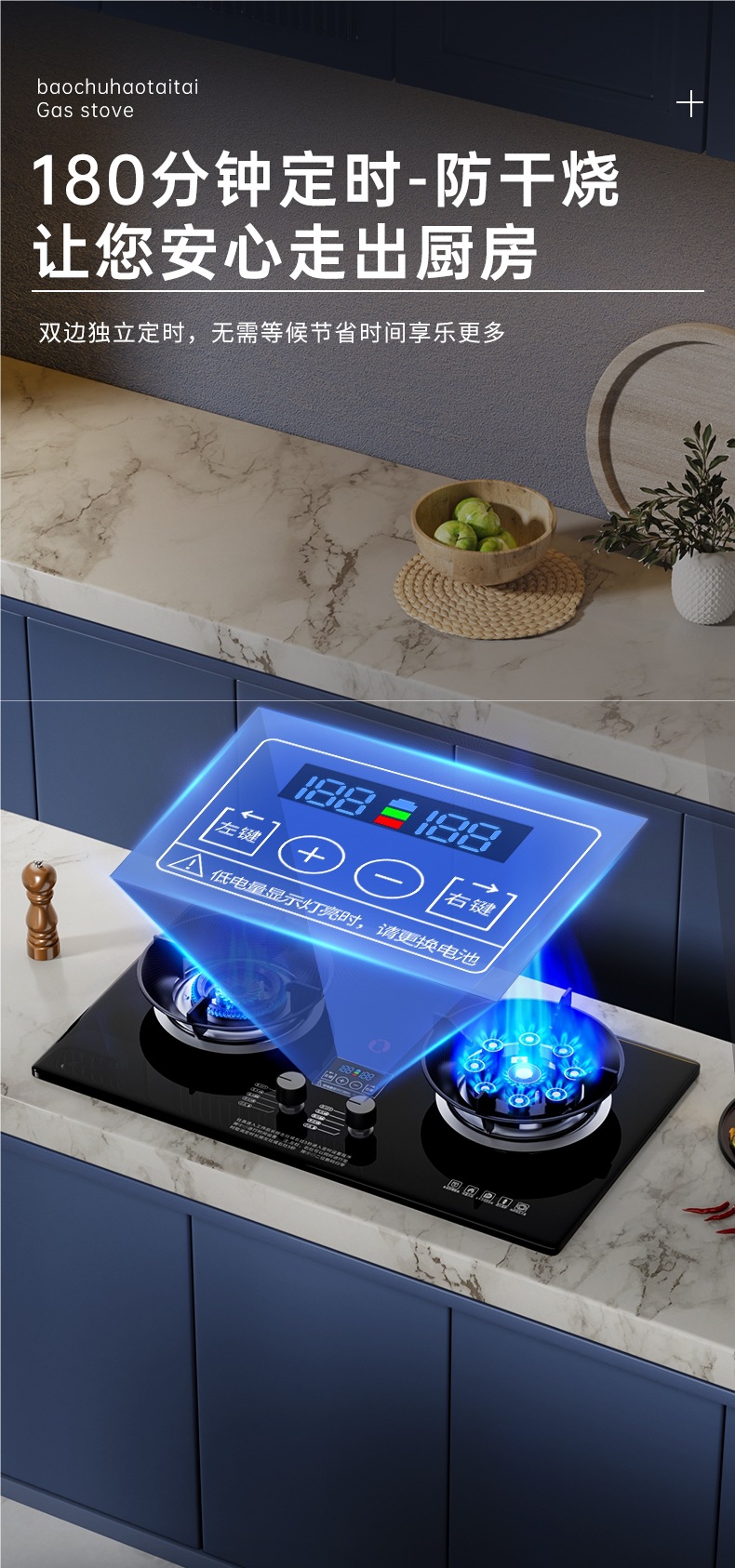 网红翻盖双猛火-防爆全包底【防烫+定时+聚能】