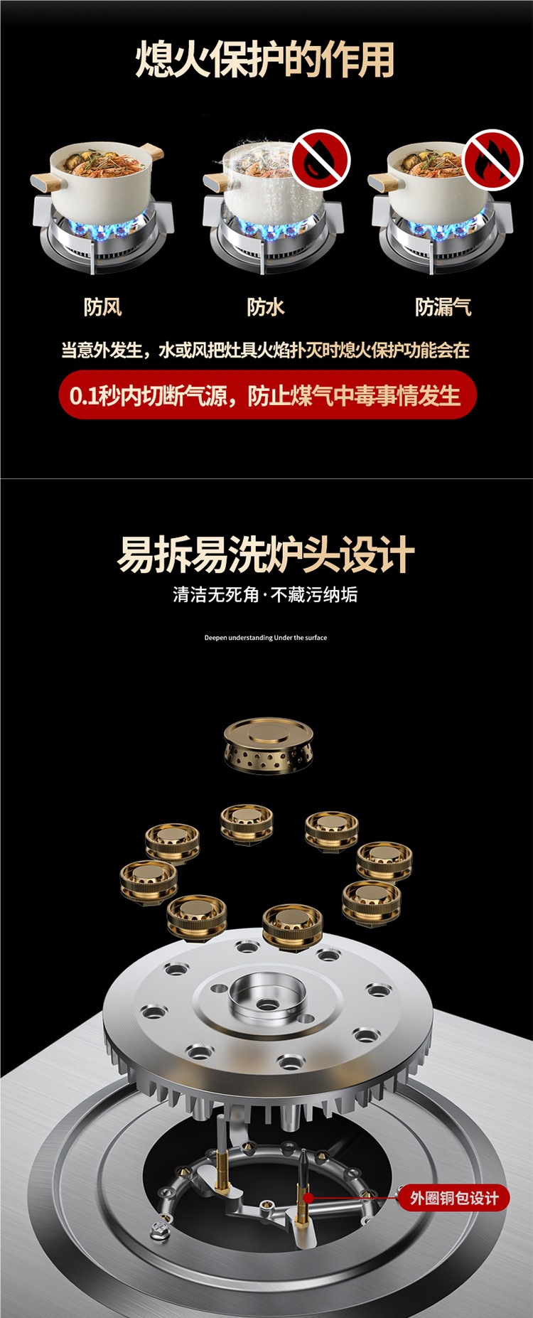 - 聚能5.8kw炫火+熄火保护+一级能效+聚能防风