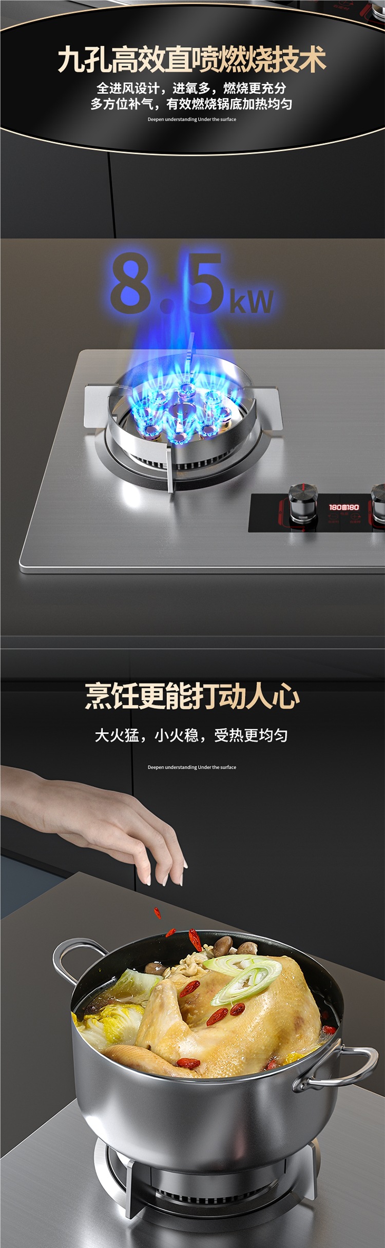 - 高配8.5kw猛火右九腔-无定时+一级能效+熄火保护-不锈钢