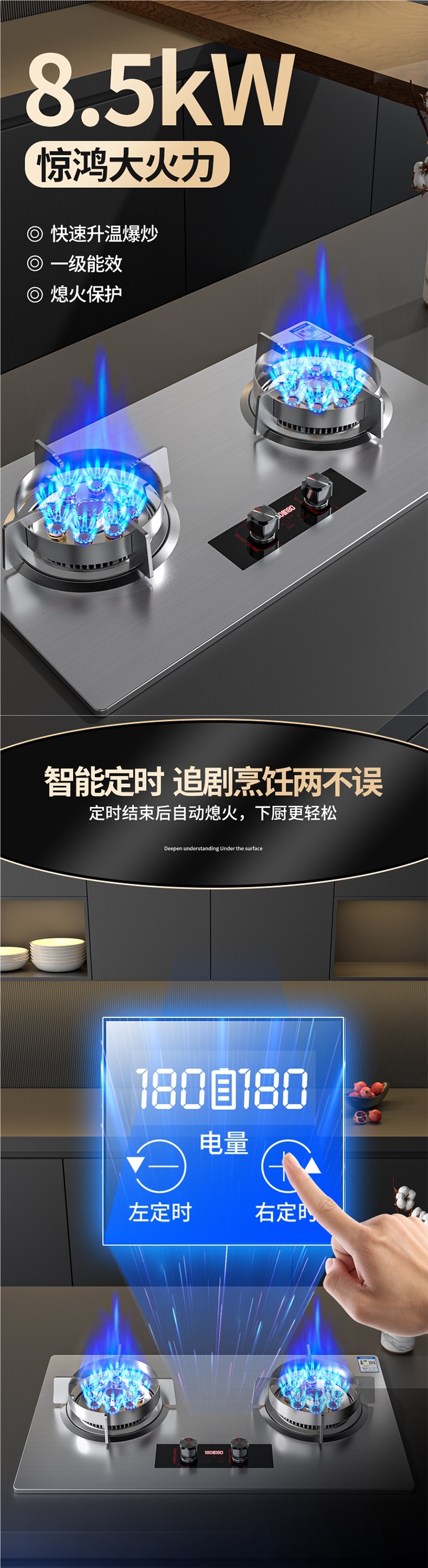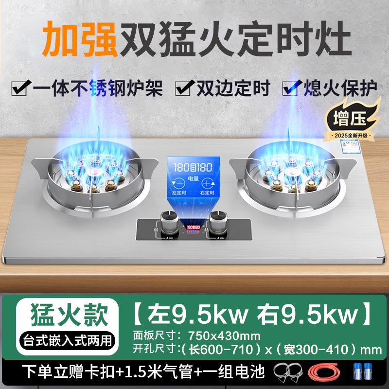 - 【旗舰9.5kw爆炒-双九腔】无定时+不锈钢款+熄火保护一级节能