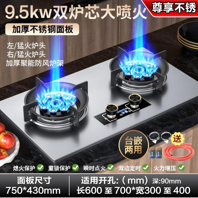 燃气灶双灶大火力家用嵌入式天然气灶液化气带熄保煤气炉台式