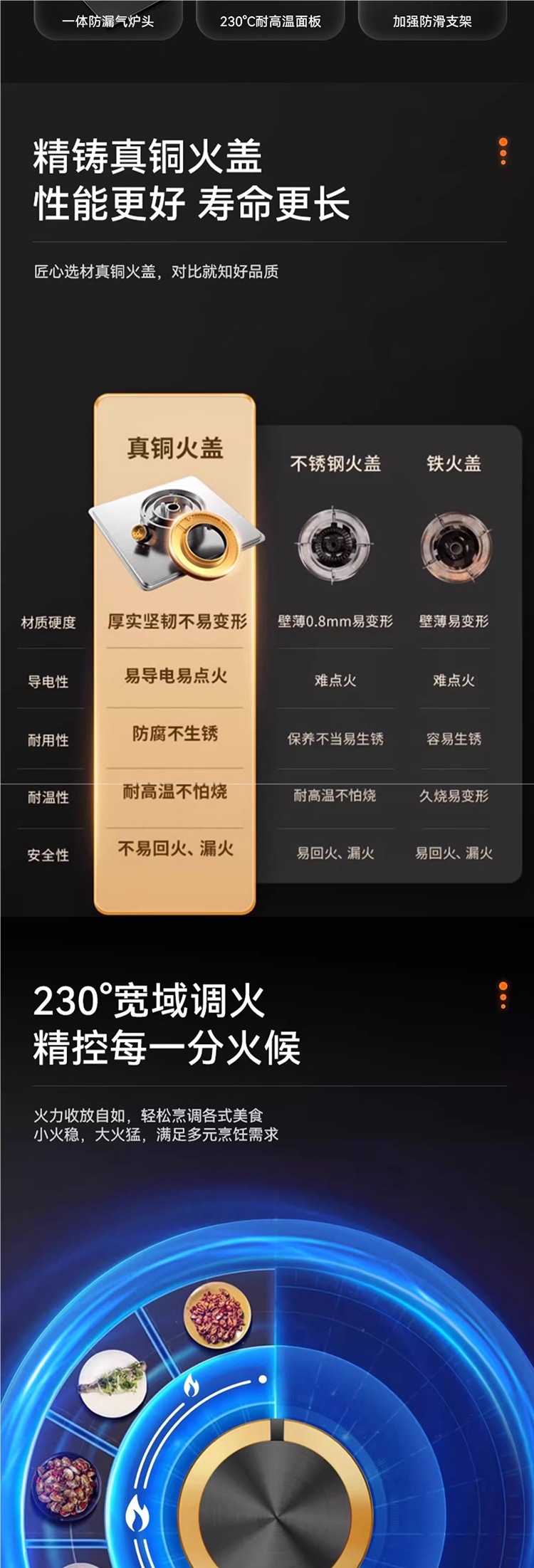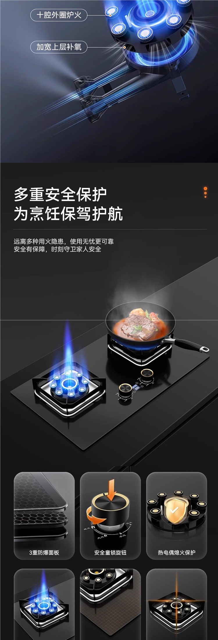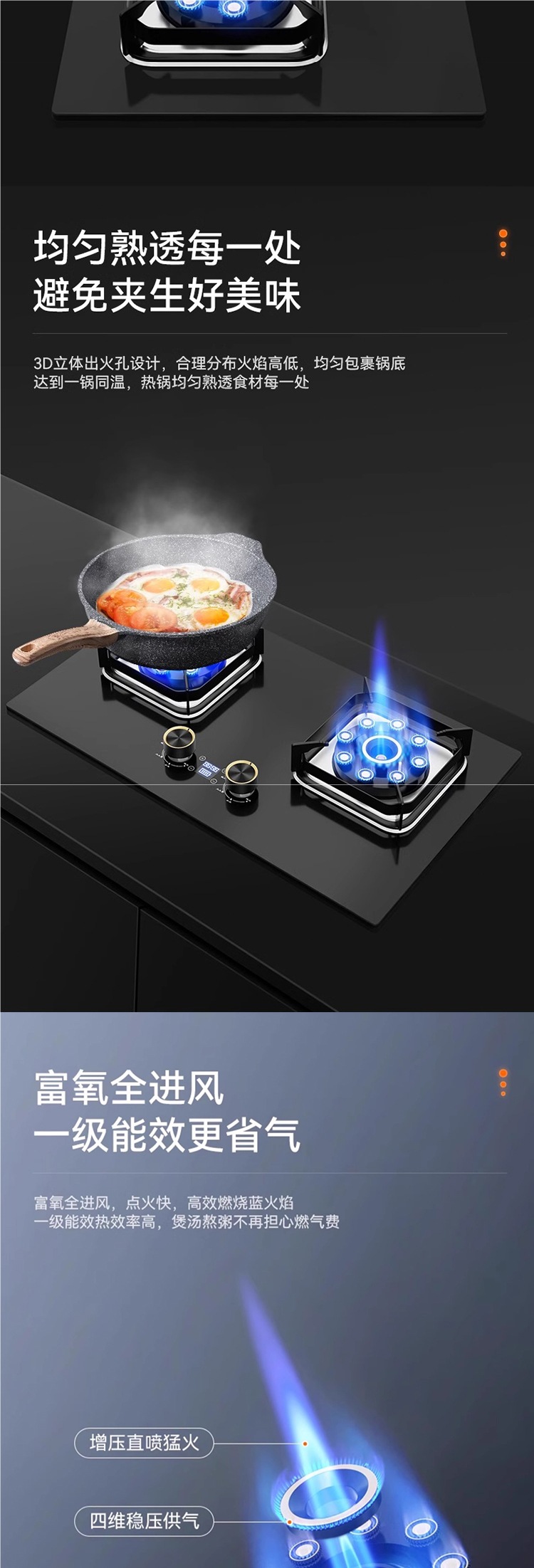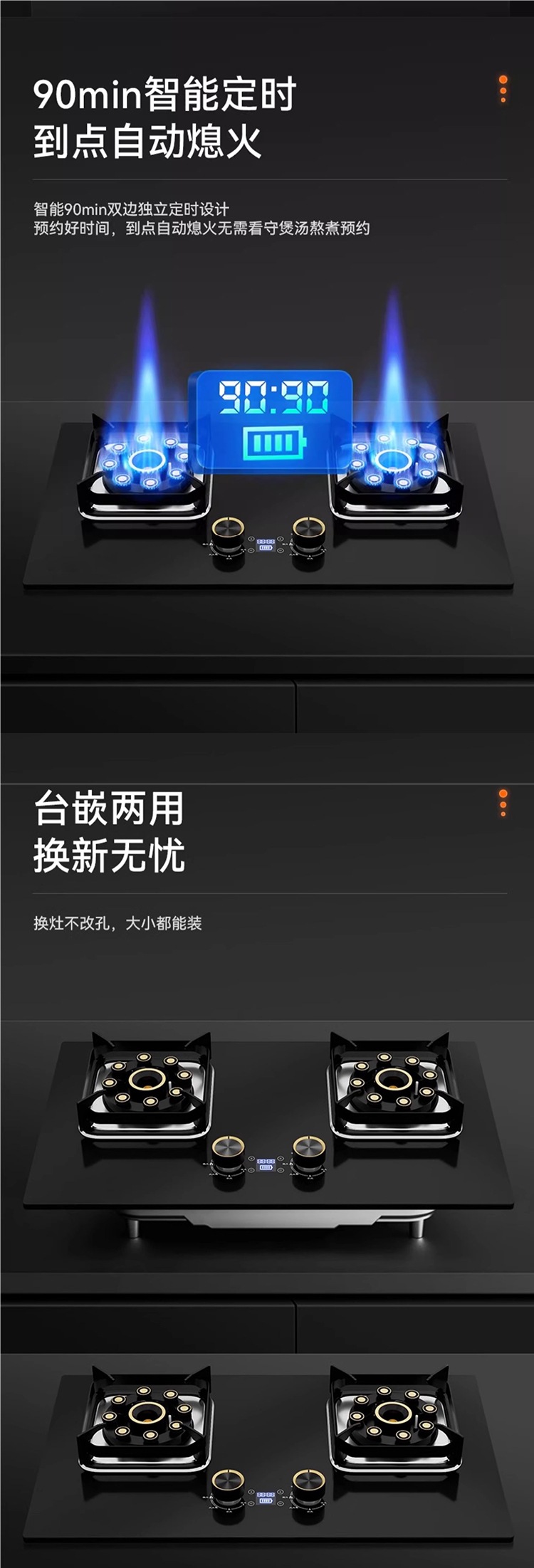 - 标配5.2kw节能双灶-熄火保护一级能效钢化玻璃