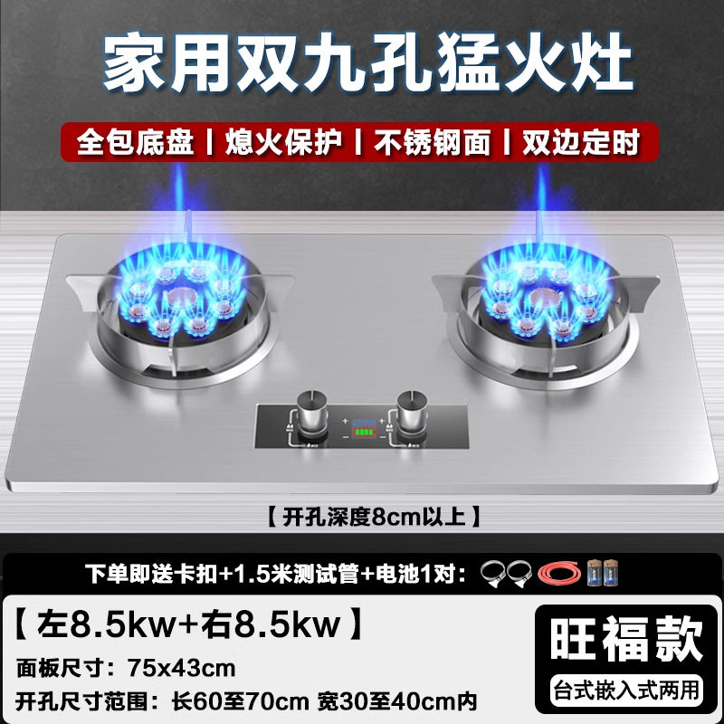 - 【旺福款】8.5kw双猛火-双边定时-熄火保护-不锈钢一级能效