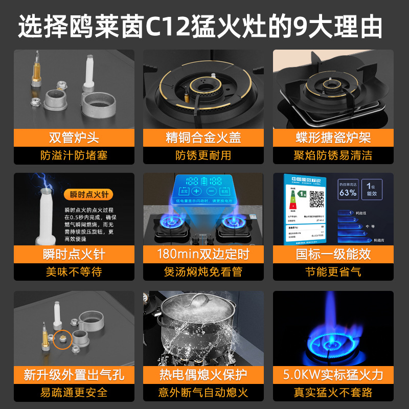 家用定时煤气灶直喷猛火灶易清洁双管炉头天然气双灶