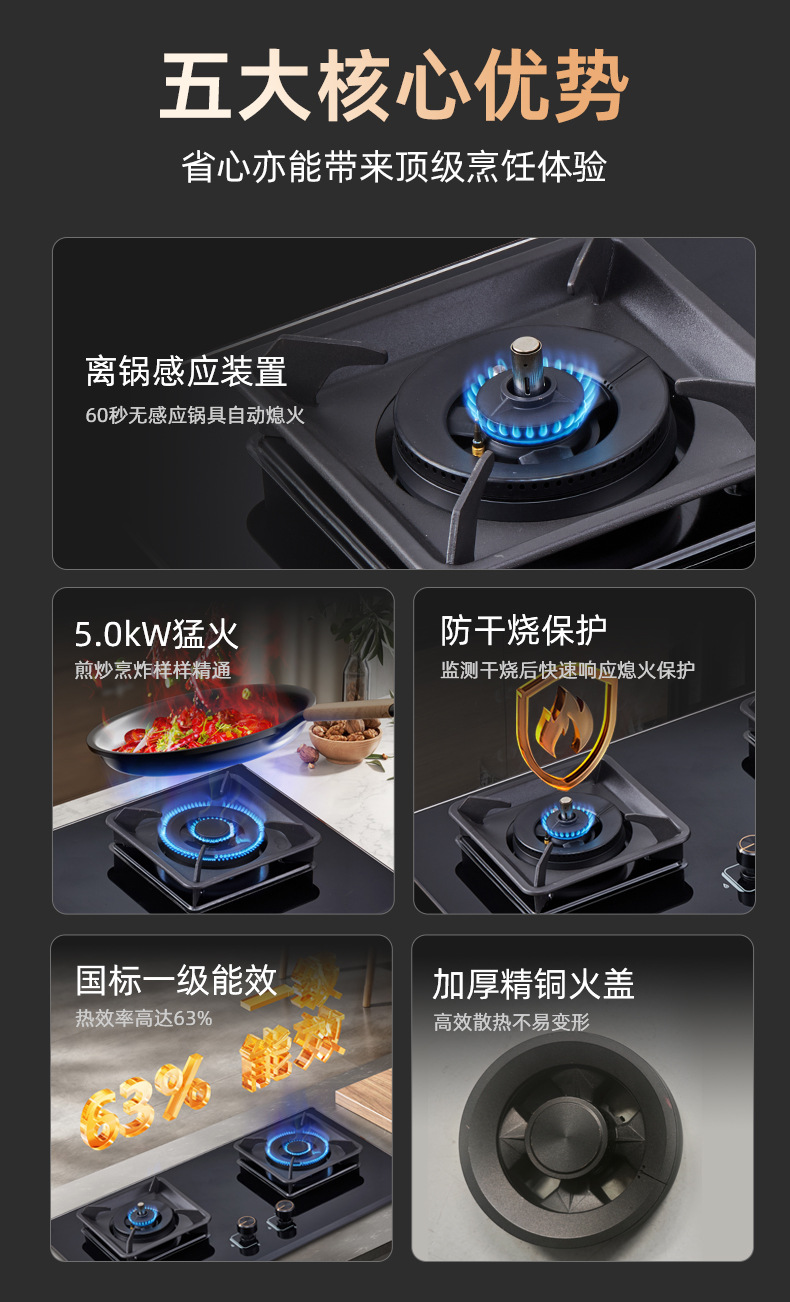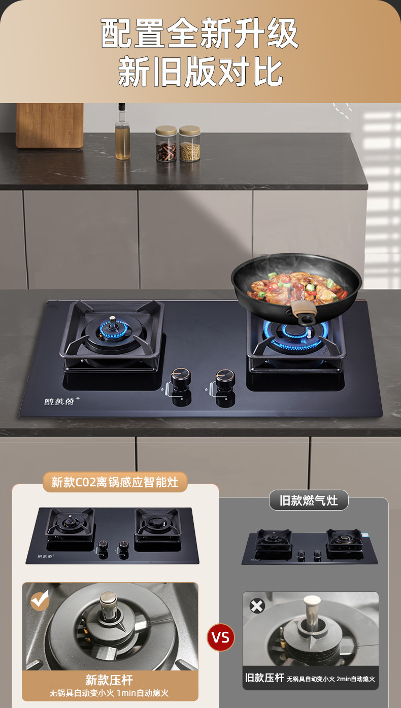燃气灶双灶 离锅感应防干烧自动熄火煤气灶智能控火 天然气灶