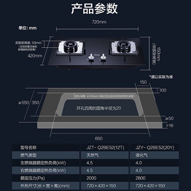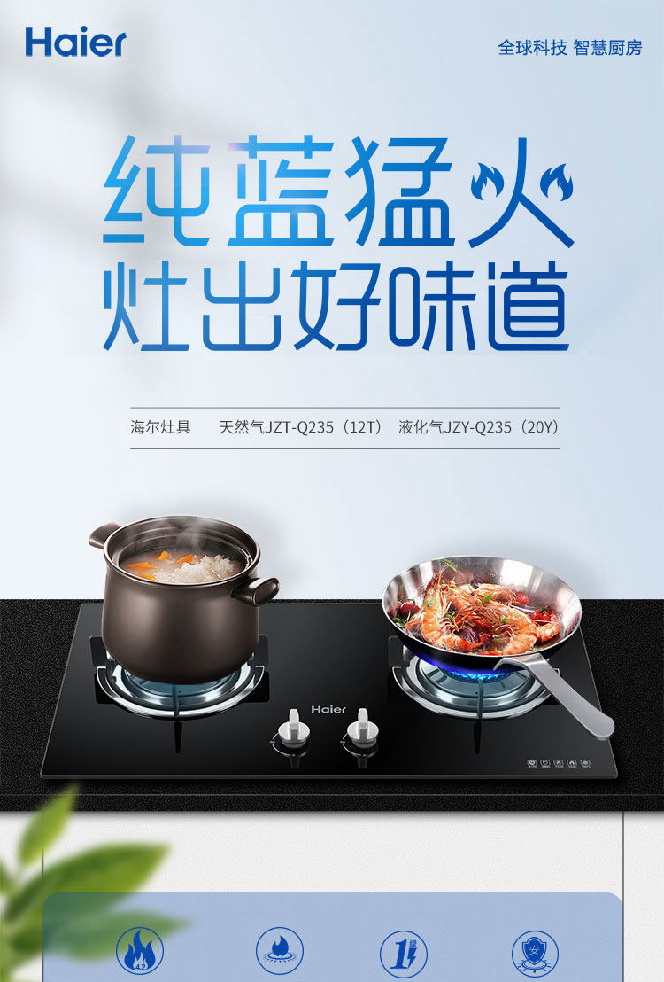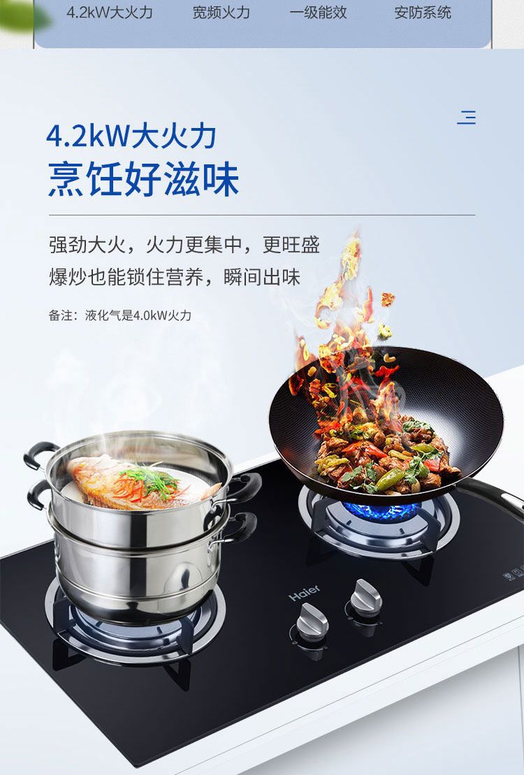 海尔燃气灶双灶节能猛火天然气家用一级能效大火力台嵌两用4.5KW