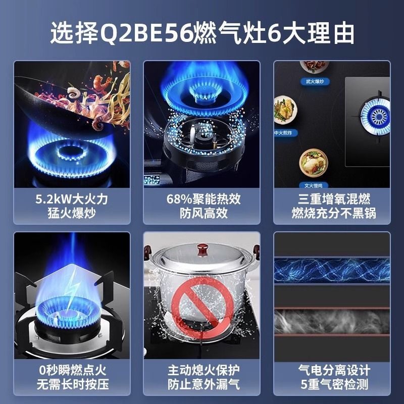 家用5.2KW大火力燃气灶聚能燃气灶双灶家用厨房天然气炉灶嵌