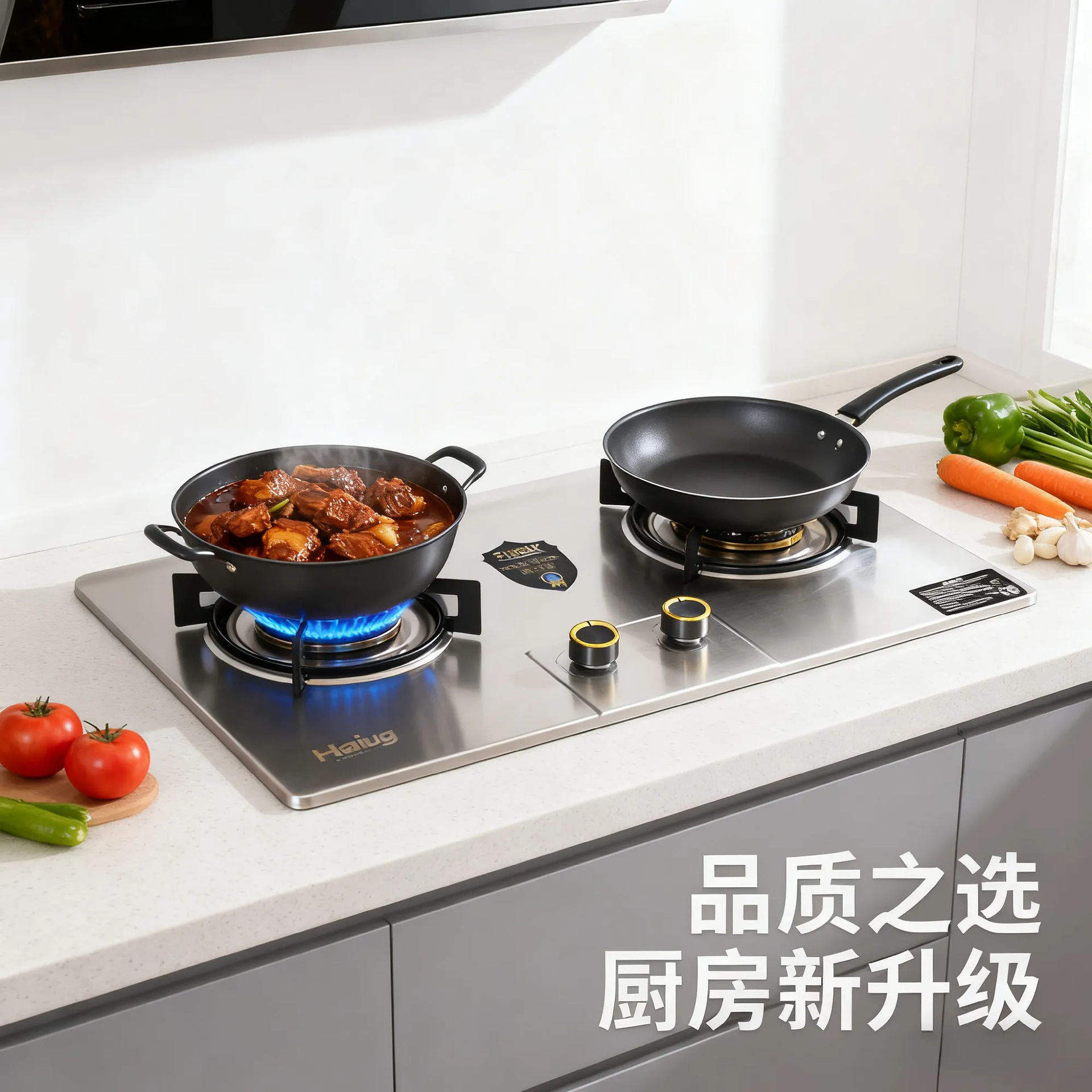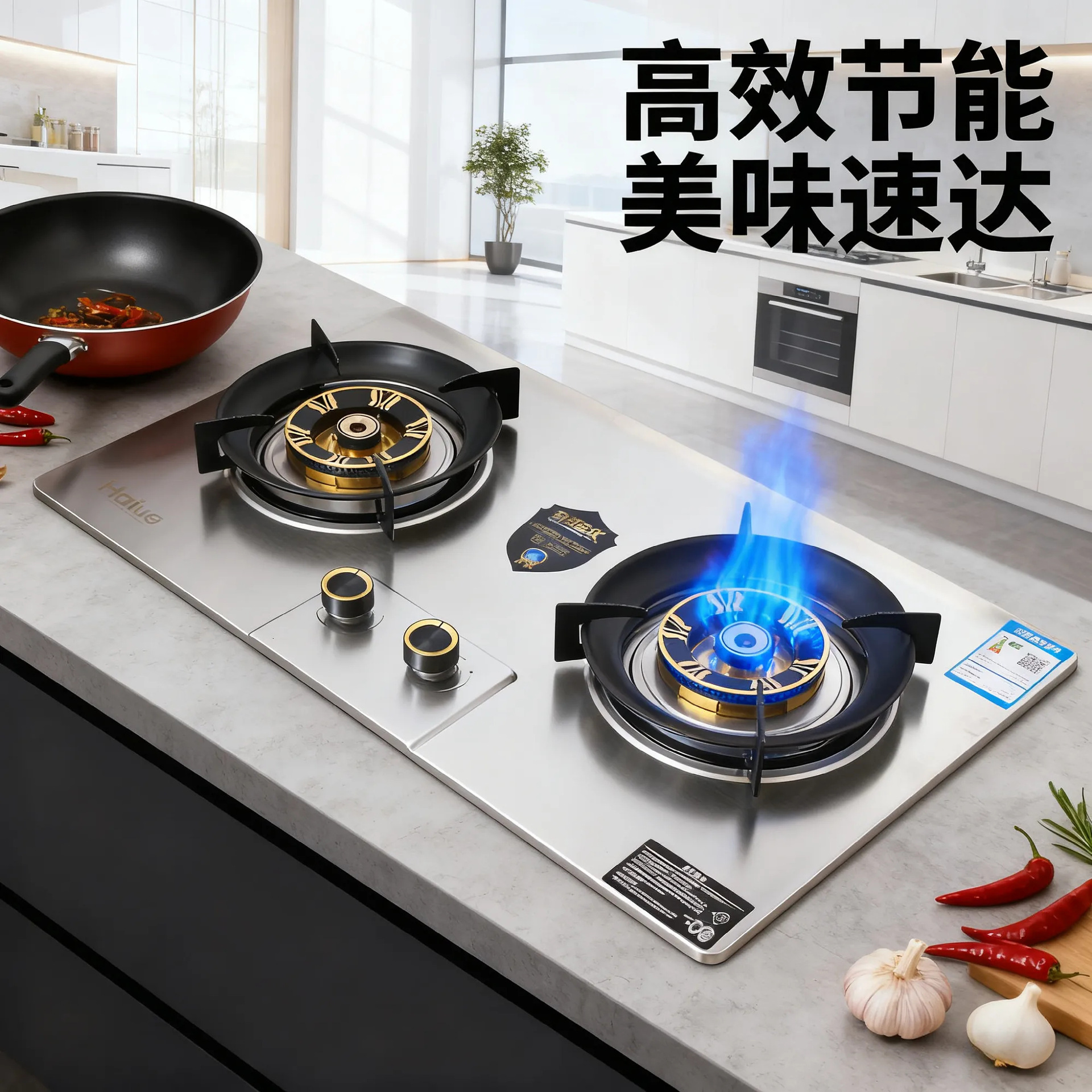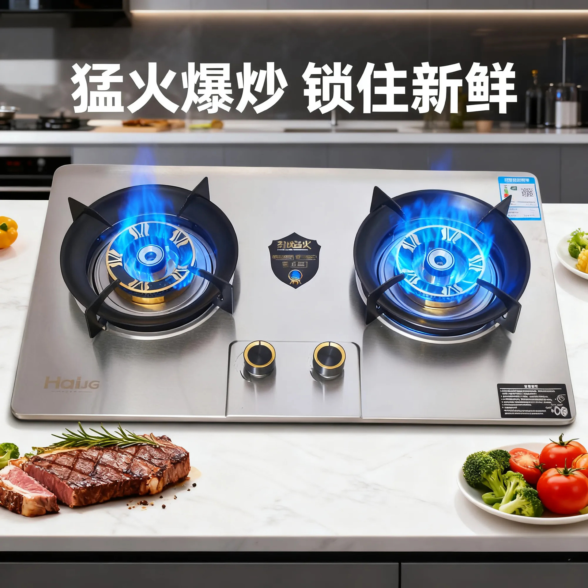 不锈钢家用燃气灶直喷猛火灶自动断气熄火保护双灶