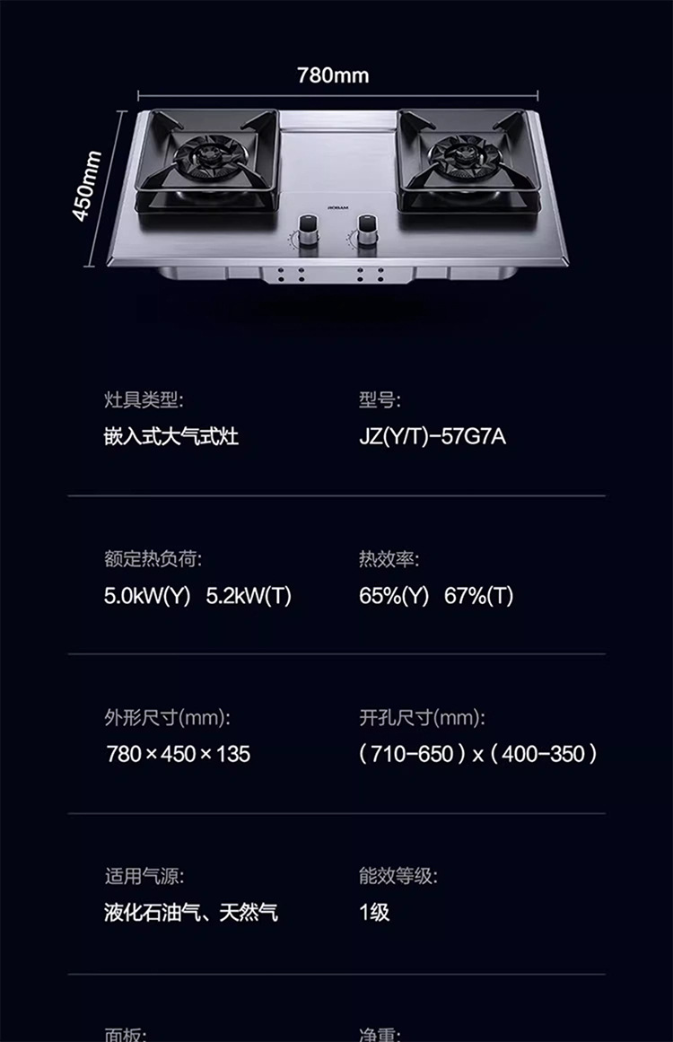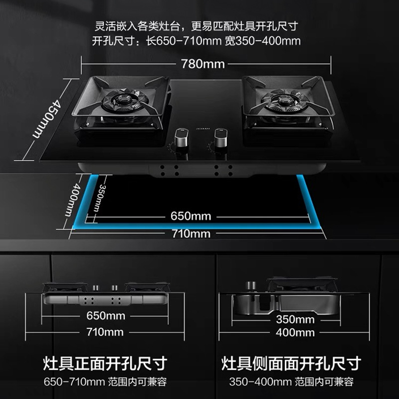 铜盖双灶天然气嵌入式台式两用家用厨房燃气灶