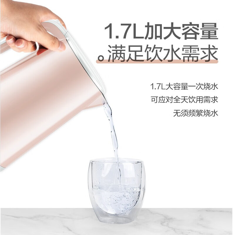 苏泊尔电水壶新品1.7L双层防烫304不锈钢1800W快烧水壶SW-17E05D