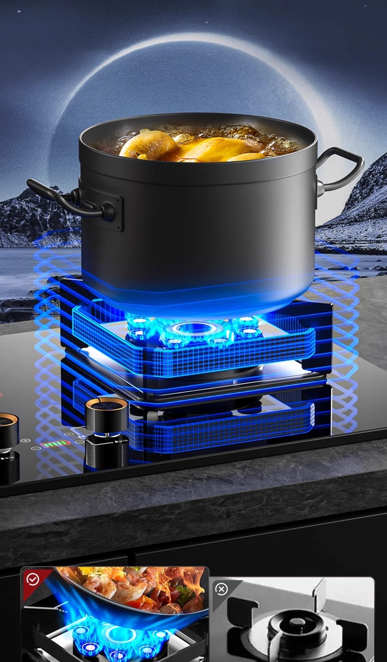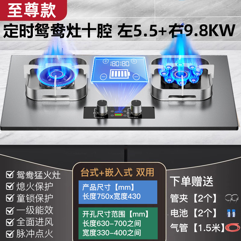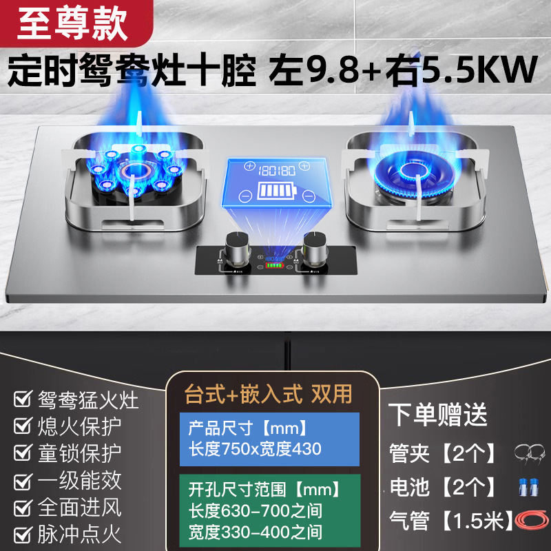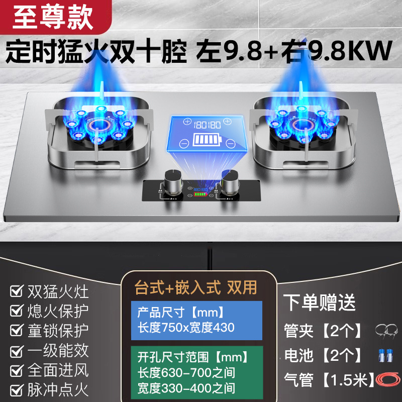 - 2025新品【加厚不锈钢】增压9.8kw双猛火+双边定时+熄火保护