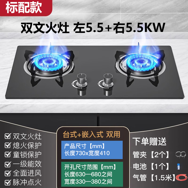 燃气灶双灶家用液化气台式天然气炉具猛火灶嵌入式节能煤气灶