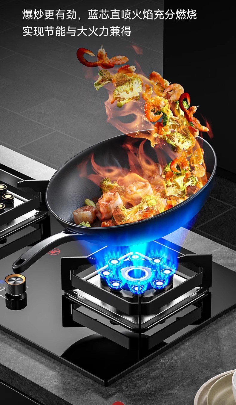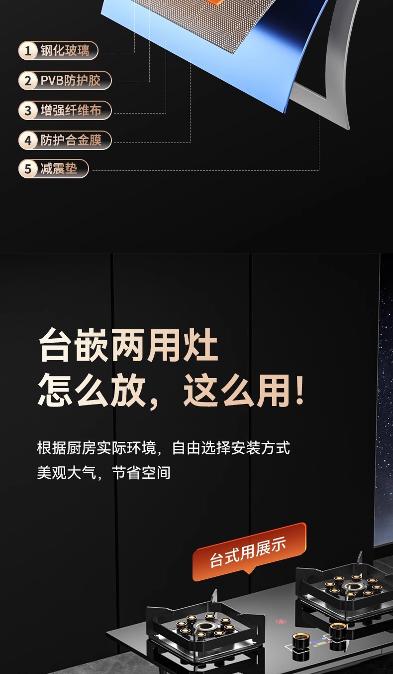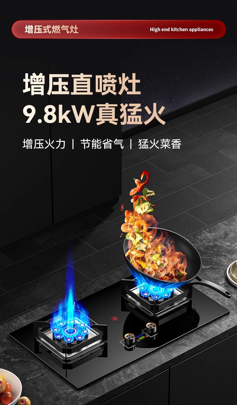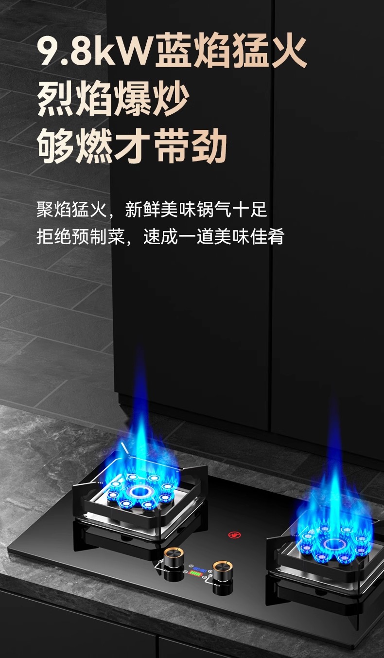 - 2025新品【黑钛防爆钢化玻璃】增压9.8kw双猛火+双边定时+熄火保护