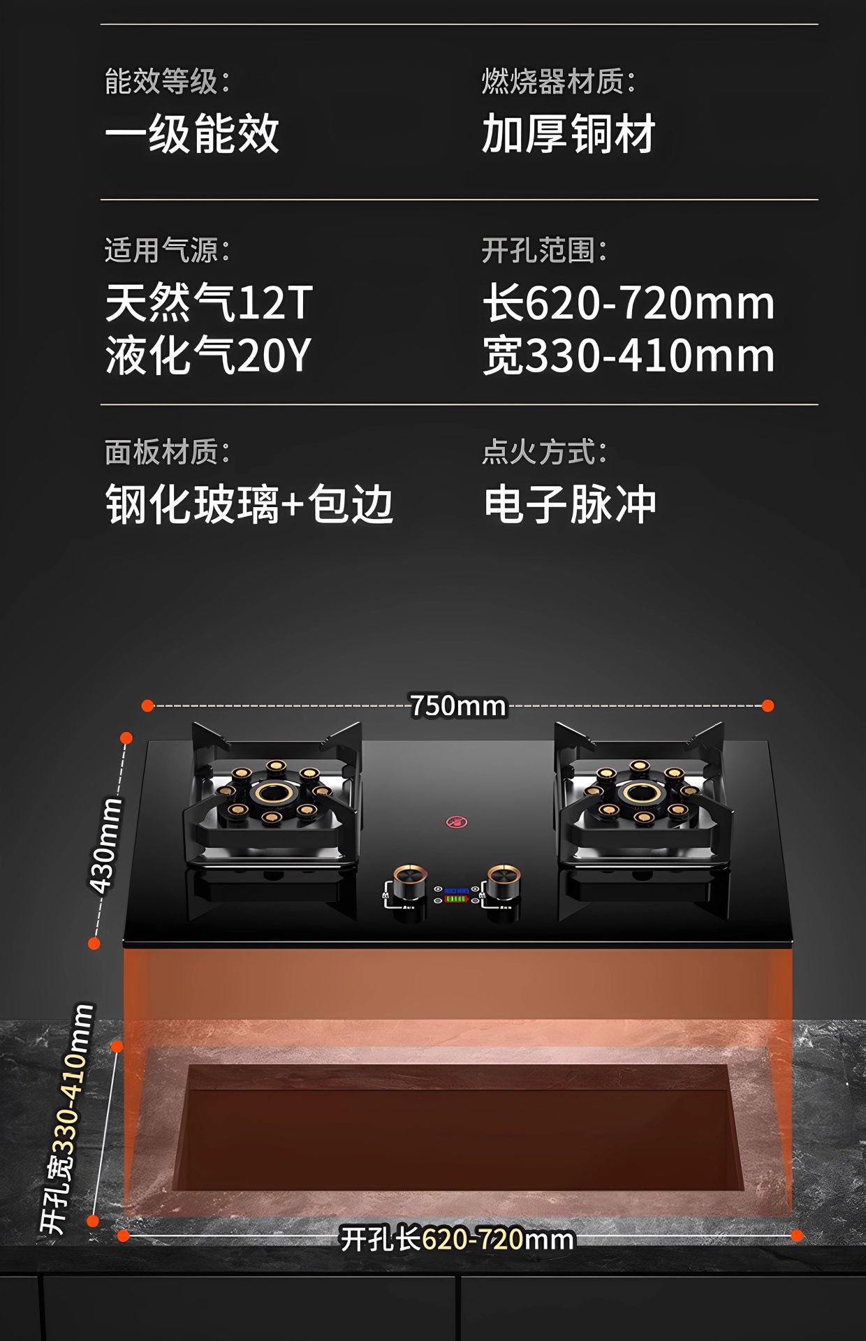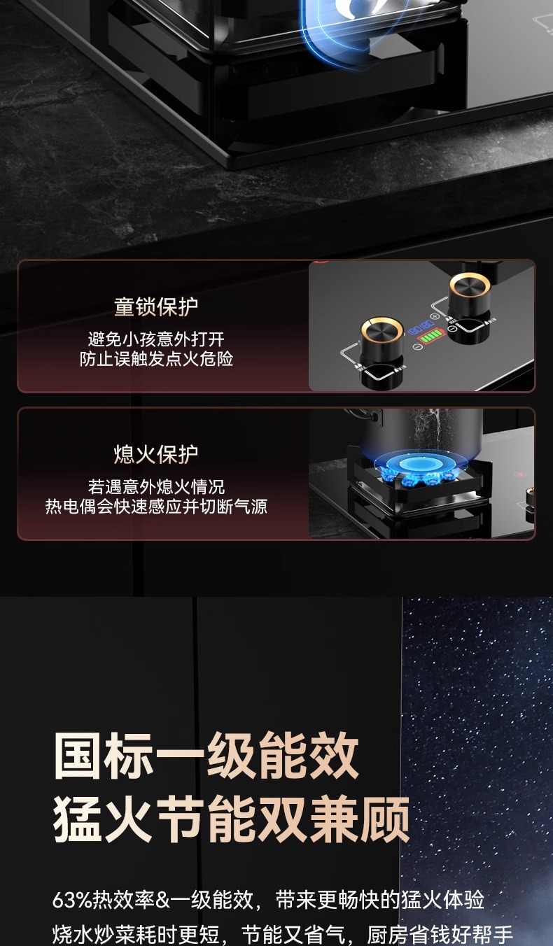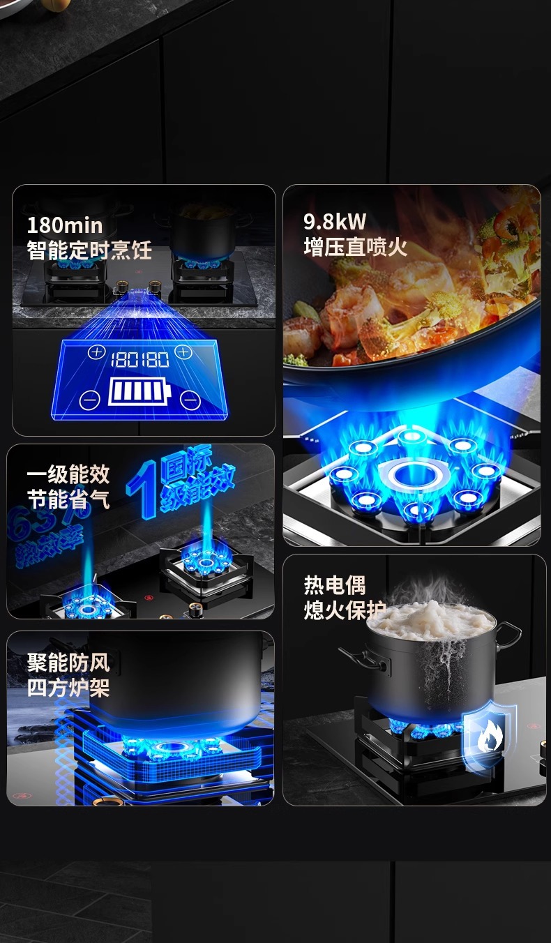 - 2025新品【黑钛防爆钢化玻璃】增压9.8kw双猛火+双边定时+熄火保护