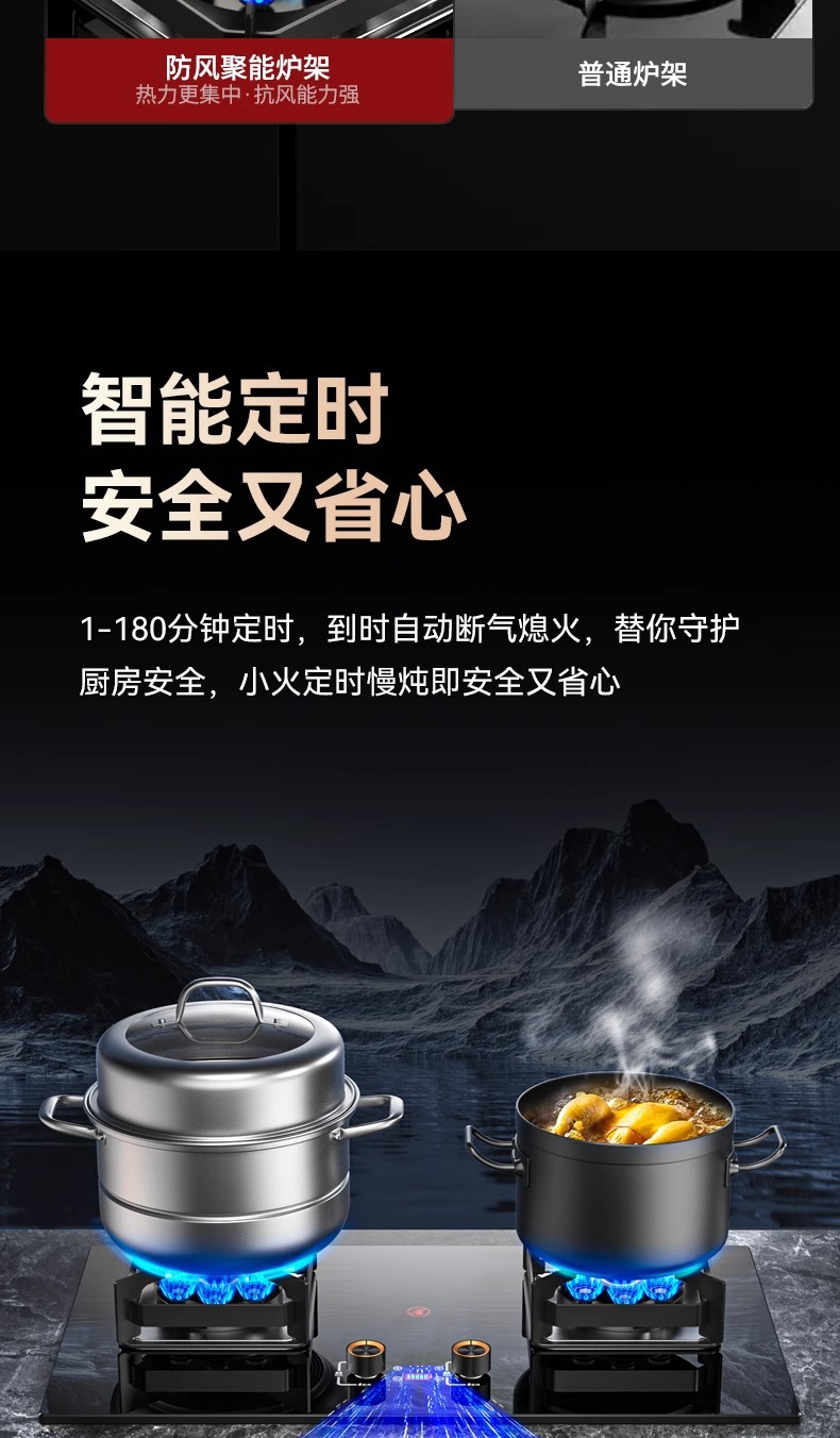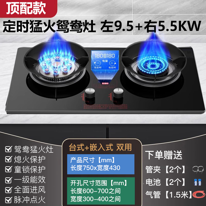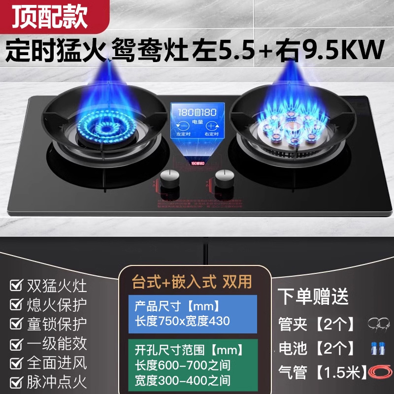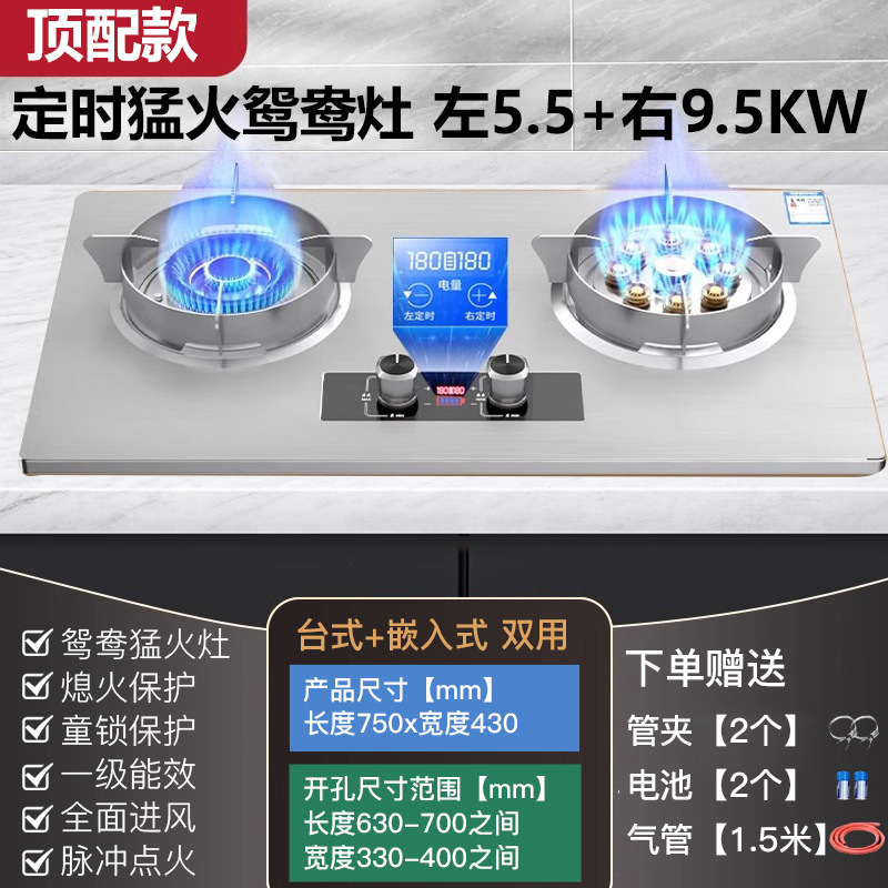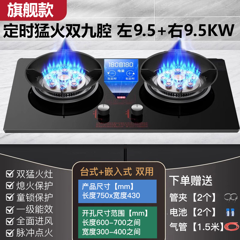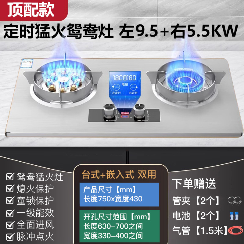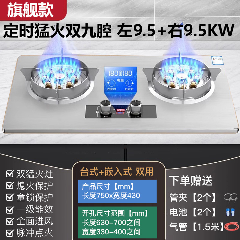 - 加强顶配款【加厚不锈钢】9.5kw双猛火+双边定时+熄火保护