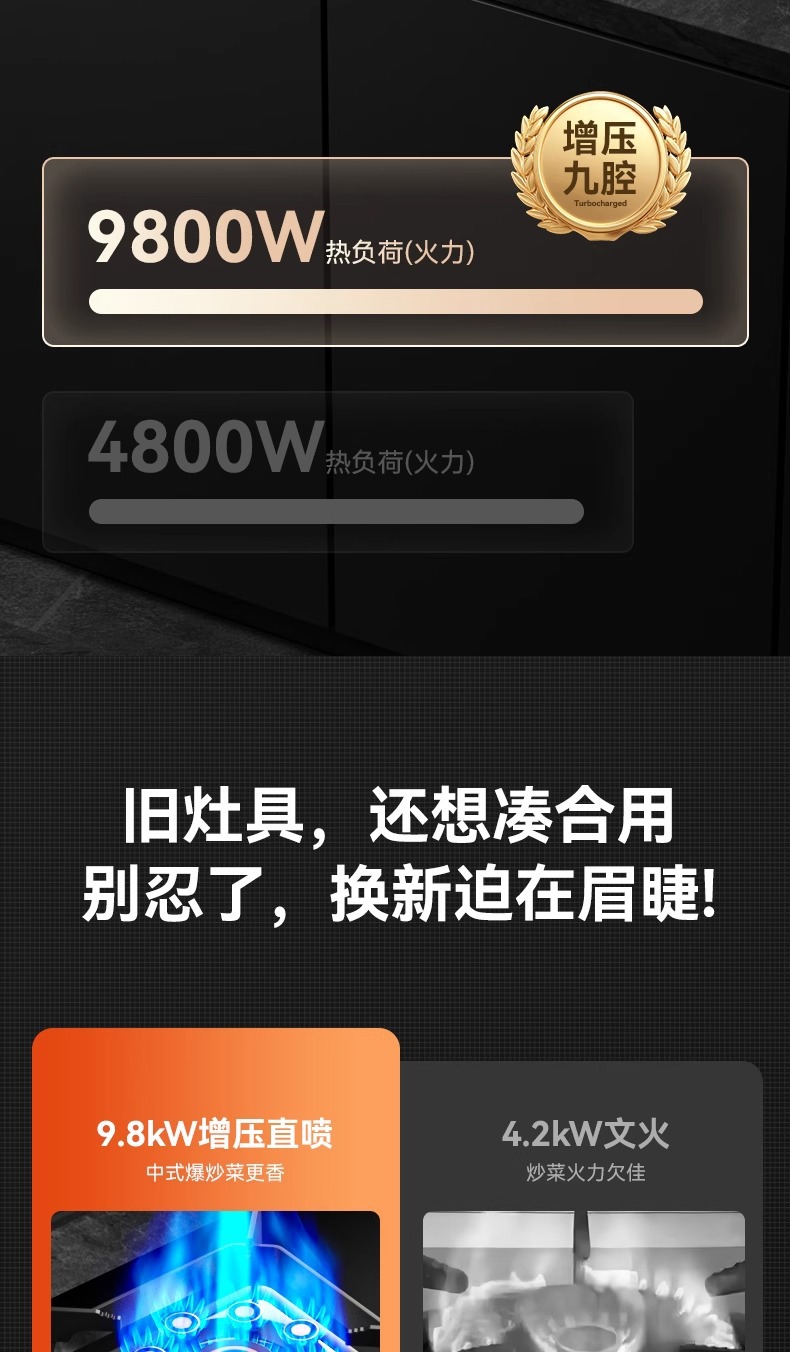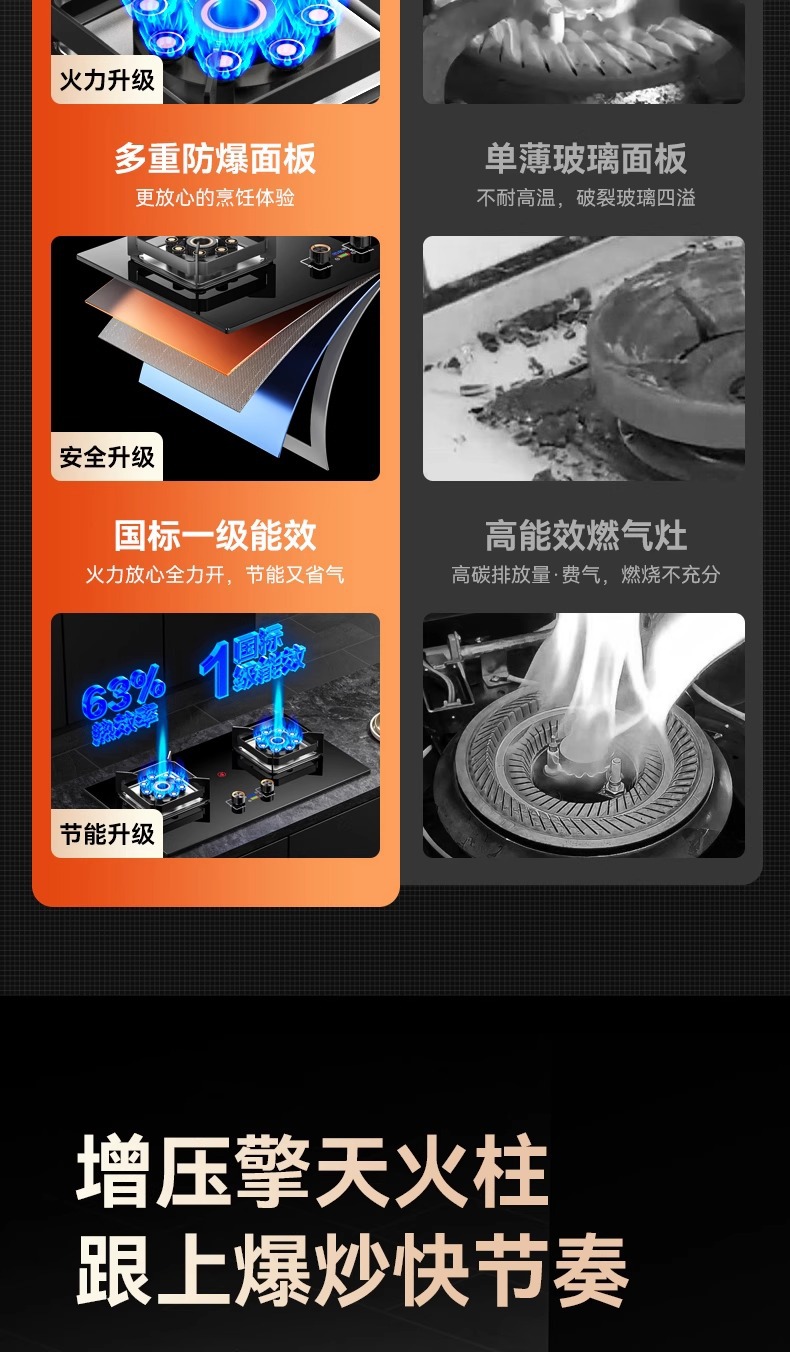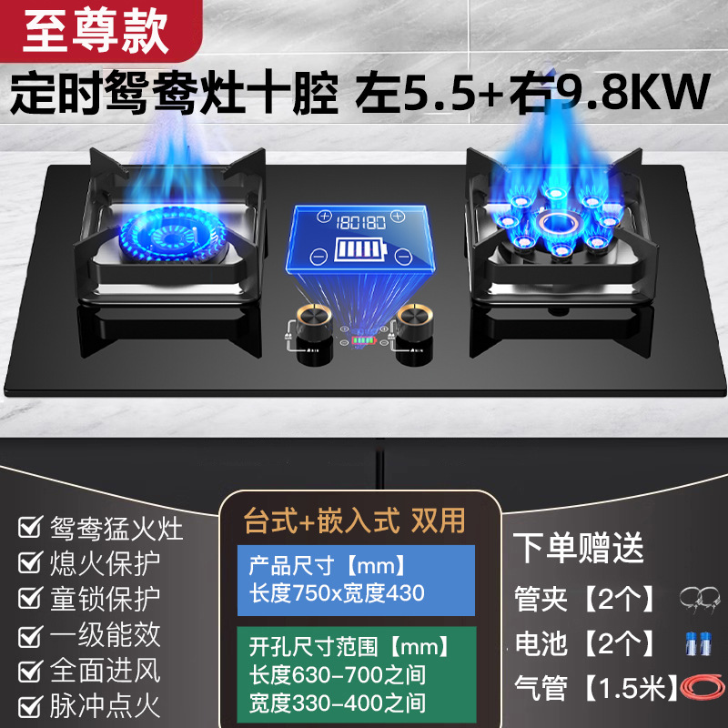 - 2025新品【黑钛防爆钢化玻璃】增压9.8kw左猛火+双边定时+熄火保护