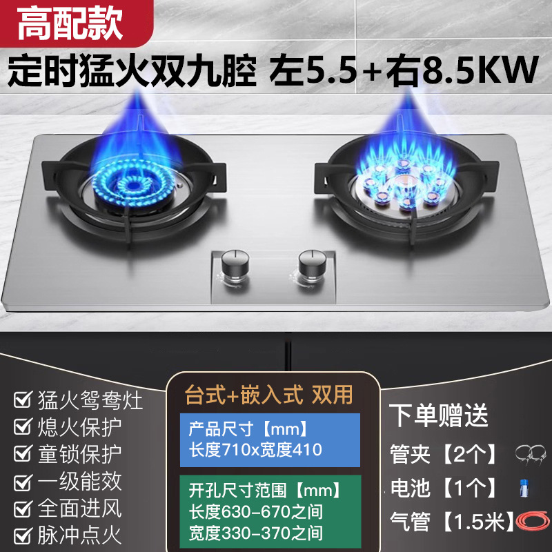 - 加强高配款【不锈钢】8.5kw+双猛火+无定时+熄火保护