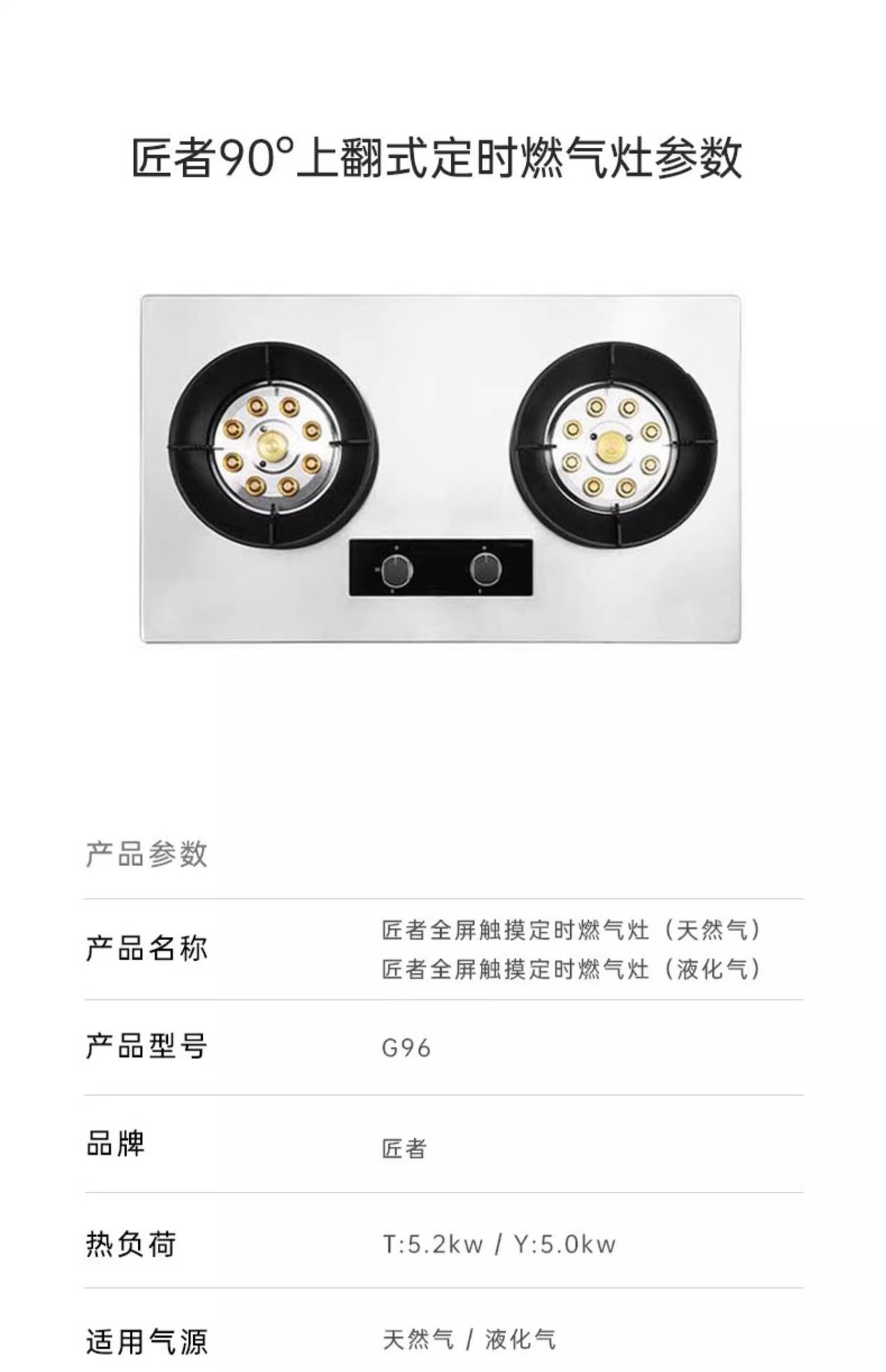 匠者G96上翻天然气灶触摸定时10头直喷定时猛火灶燃气灶双灶