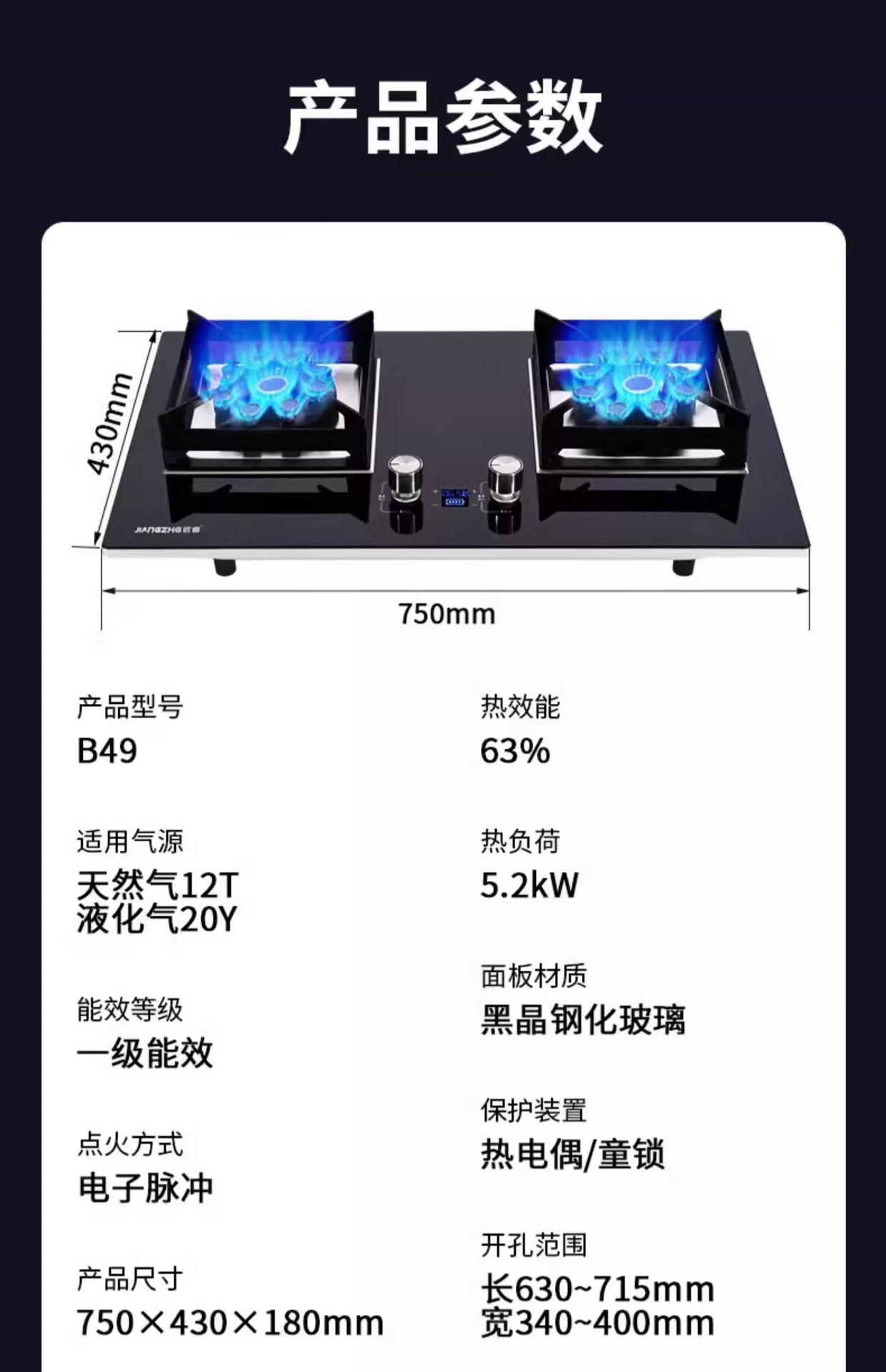 【B02】★增压直喷★5.2KW★九腔直喷★双边定时★猛火灶★熄火保护