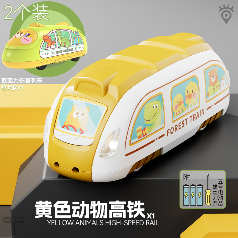 - 【黄色+电池+黄色回力高铁】电动感应高铁(感应避障+灯光音乐)