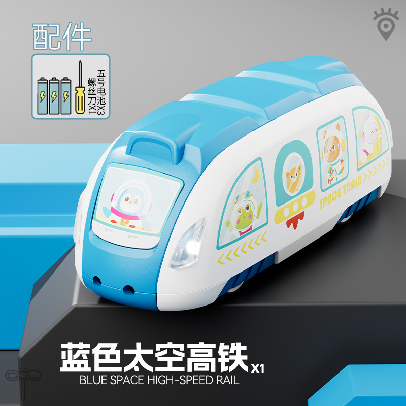 - 【蓝色+电池】电动感应高铁(感应避障+灯光音乐)