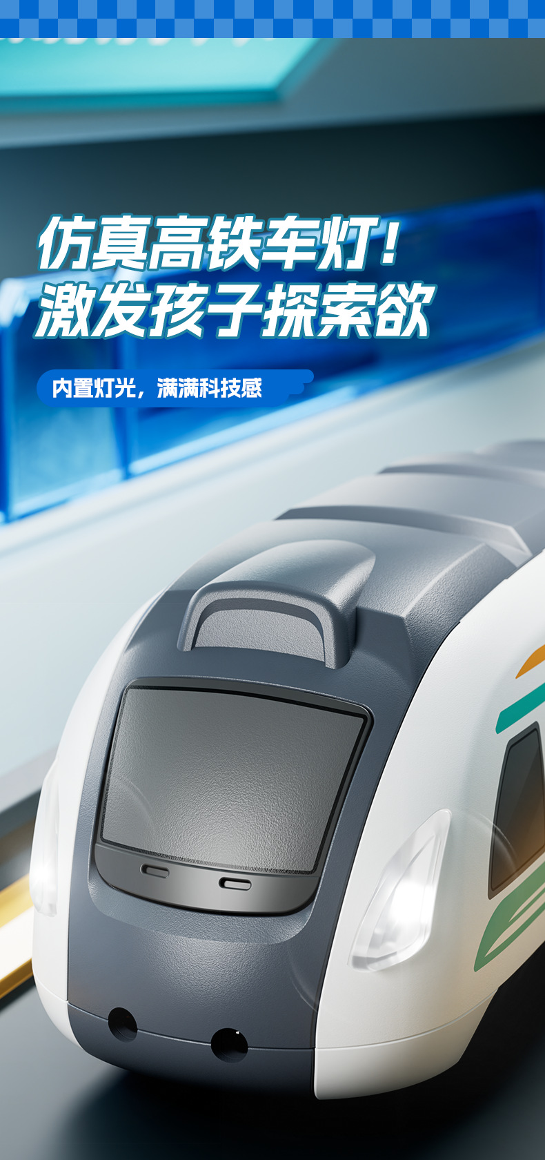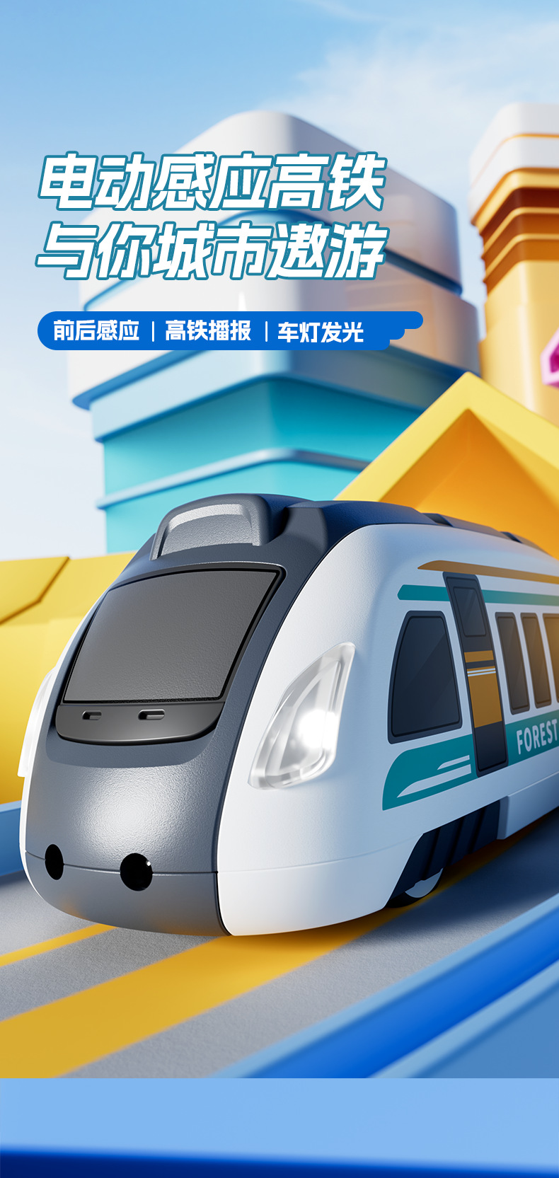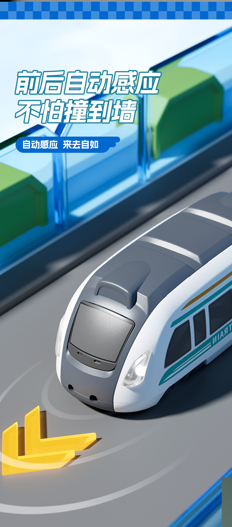- 【白色+电池】电动感应高铁(感应避障+灯光音乐)